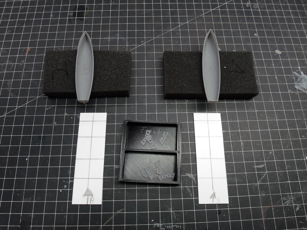 One each for the starboard and port sides. The stripes aren’t exactly evenly spaced on the two sides, and I have to take that into account.