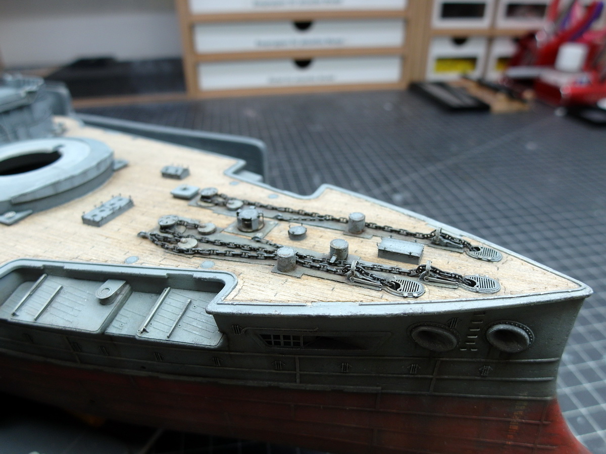 The protruding details such as profiles, davits and the like are accentuated again with a light grey.
