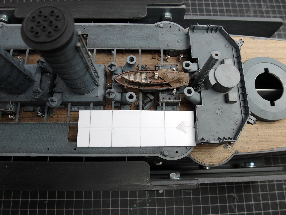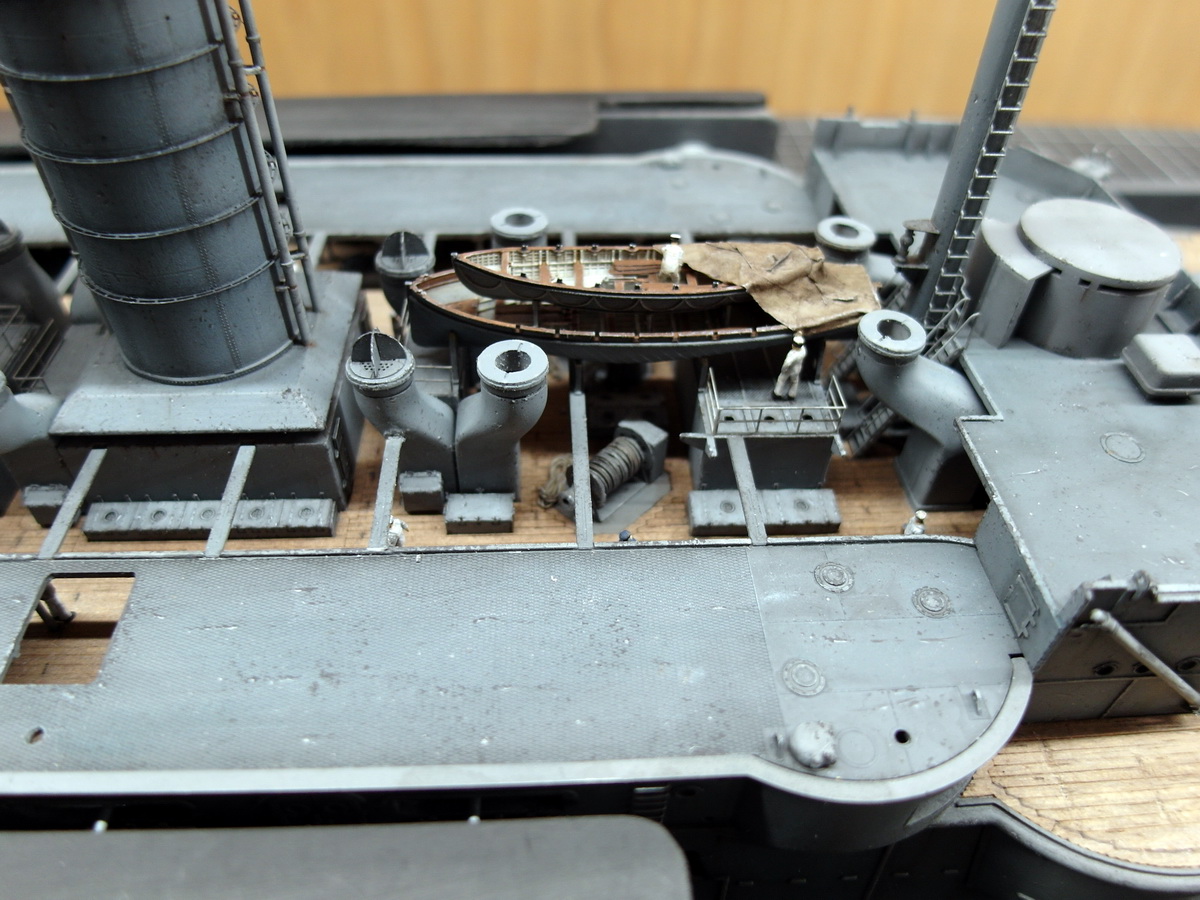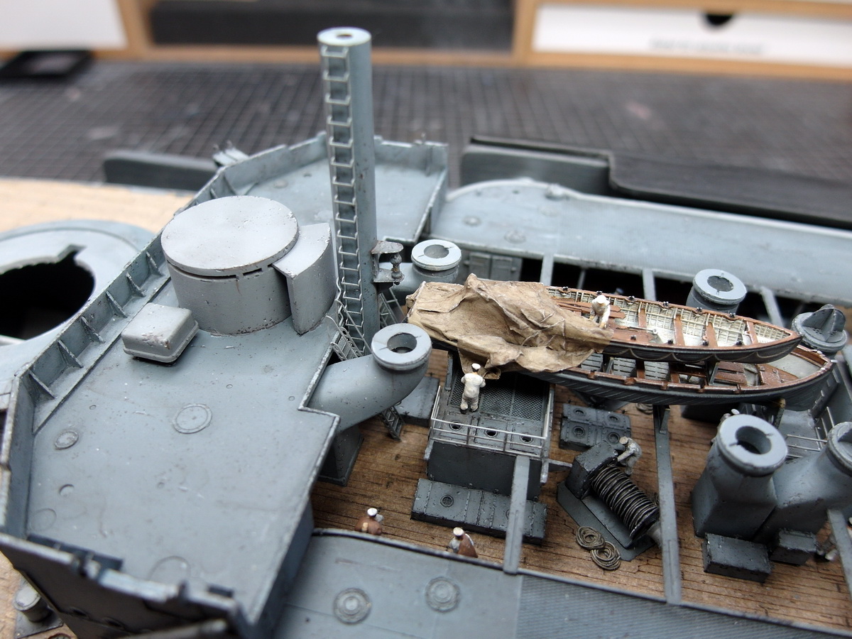 And so the bridgehouse was glued in front of the steam pinnaces towards the stern. Otherwise, it would have been difficult to install the companionways behind the pinnaces.