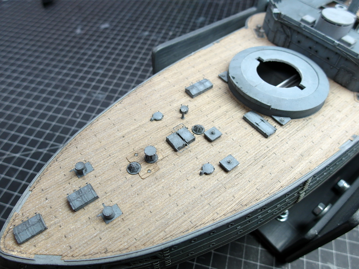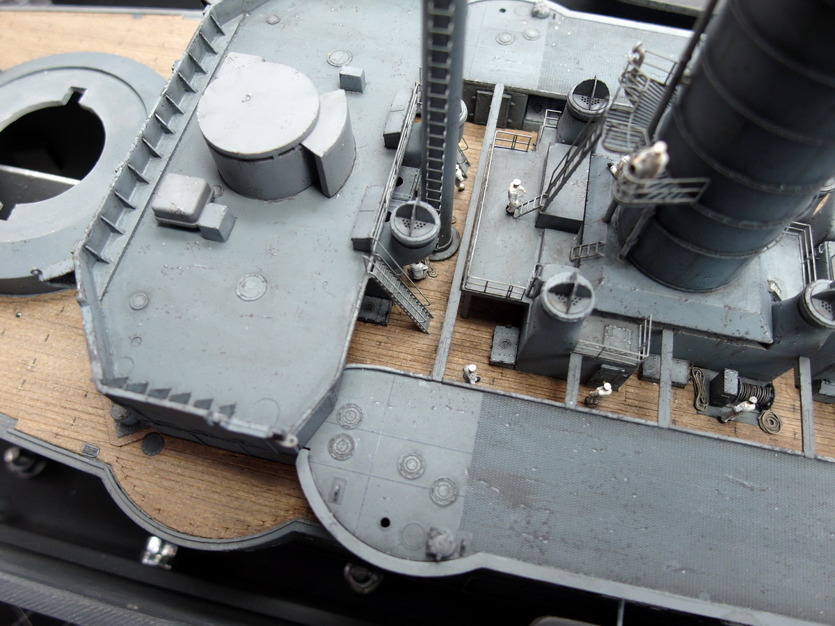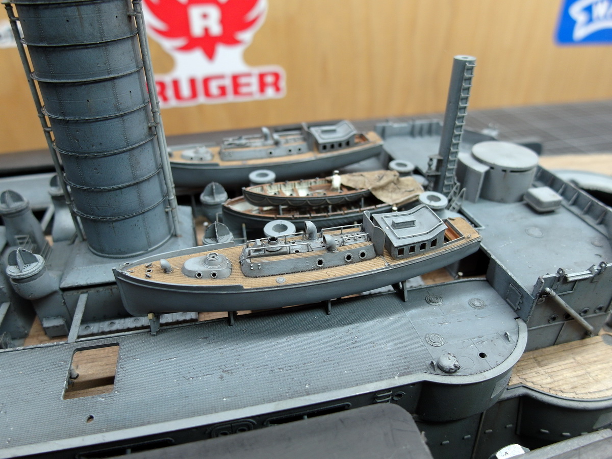And so the bridgehouse was glued in front of the steam pinnaces towards the stern. Otherwise, it would have been difficult to install the companionways behind the pinnaces.