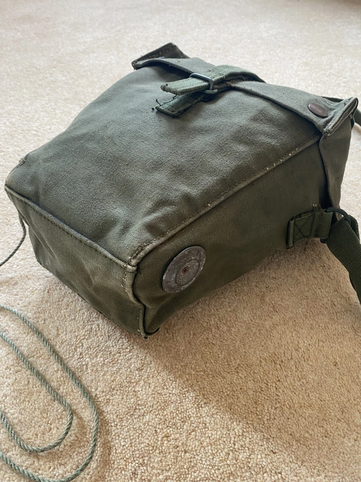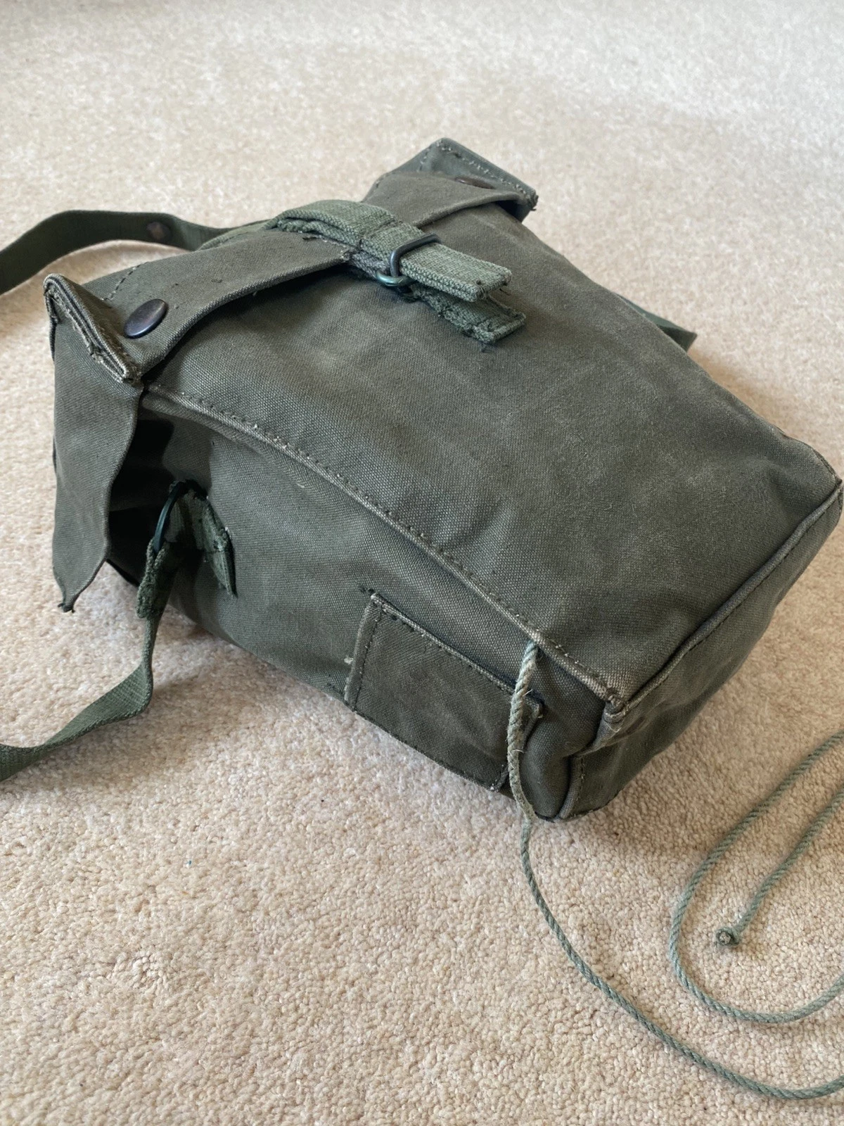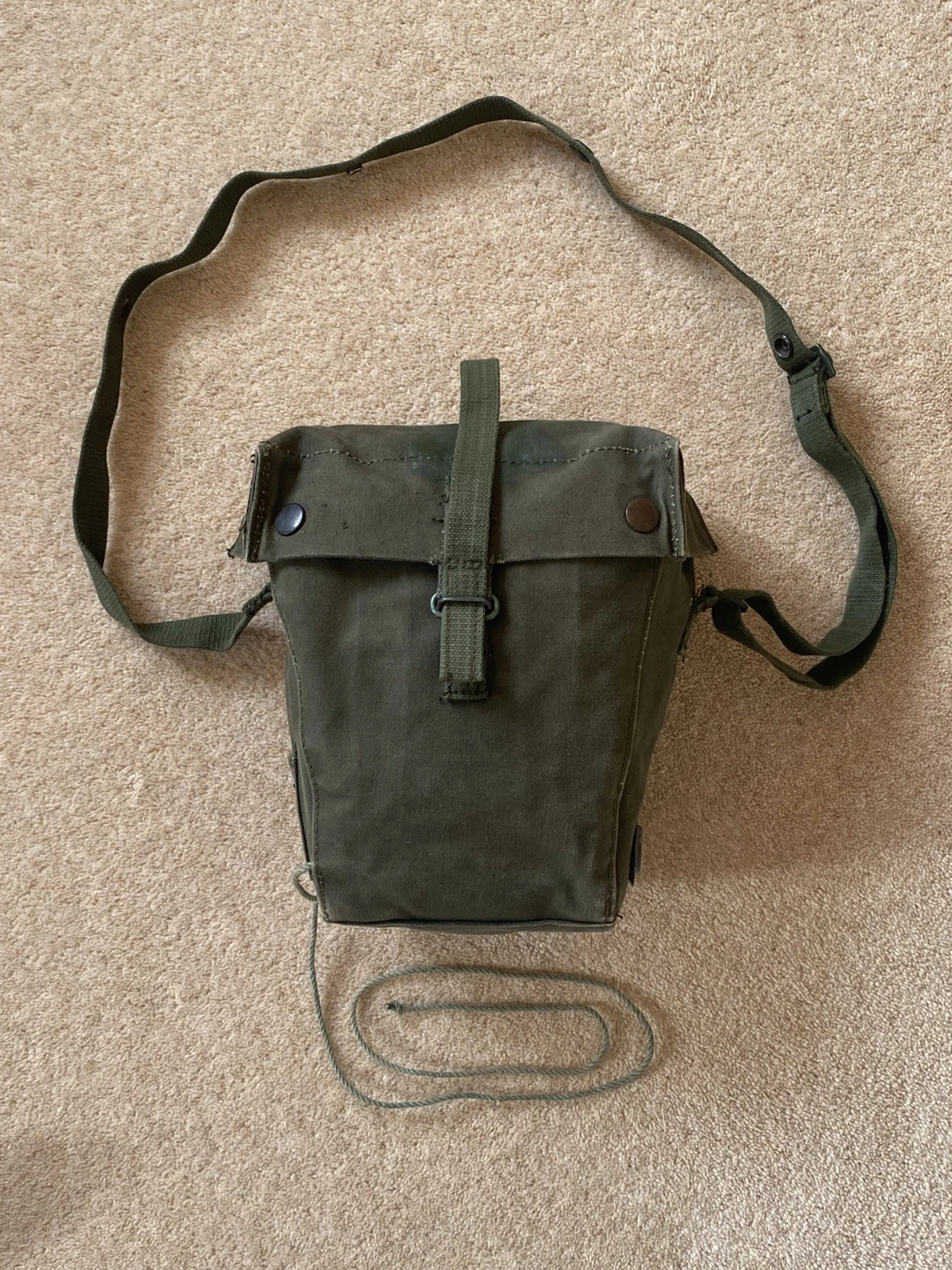 For those of an historical bent, the respirator shown on the figure – in its case – is the S6; a very well designed piece of kit. There may be those ex-servicemen viewing this who do not recognise the respirator case/haversack as it was later known. This is because at the time, the first issue was a small canvas pouch, fastened by press-studs with a large canvas loop as the opening tab. There was no room that I recall for an extra canister (though my memory may be faulty here), and it contained just the respirator. It was worn satchel like or slung around the waist, fighting for room with all the other personal equipment. Once an NBC suit had been donned it was planned to wear the case around the neck, secured by a coil of string which was contained in a small pocket, yet fastened around a small reel; not much of a change from WW1!