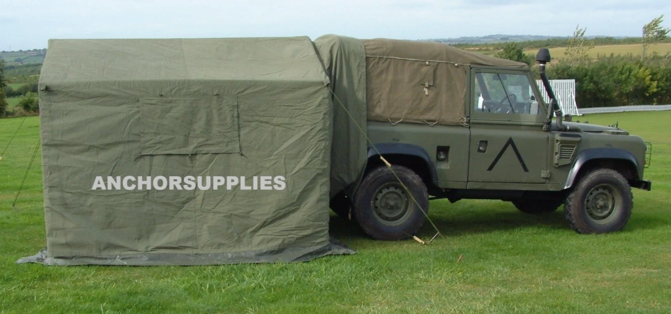 So, the camouflage net is probably just about workable, so I thought I’d move on to a bit of the base and that is where the background tentage appears. I envisage this as the entrance tent which was always a 9’ x 9’ shelter (tent) The rest of the complex consisted of Land Rovers backed up on to such tents, or larger, and the part being composed of a couple of 18’ x 24’ tents. We were a light-roled HQ which meant we were mostly Land Rover and trailer-based with tentage, the fiction being that we were airportable; I mean, we were, but only when something like the mighty Belfast transport aircraft loaded the 4T trucks including the many signals wagons. At least the HQ could break down and move quite rapidly, compared to say, our armoured divisional HQs based in Germany. We actually became quite slick at movement.