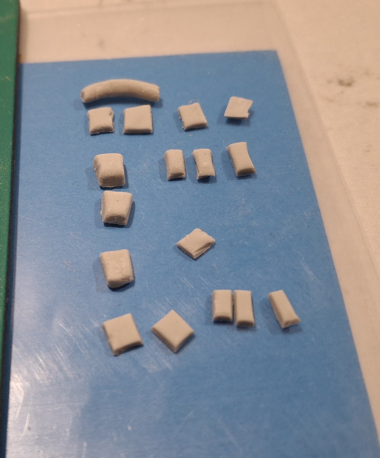 First, a series of indistinct rectangles and squares from Magic Sculp which I hope to fashion into the pouches required for the Sentry figure:
