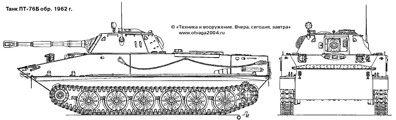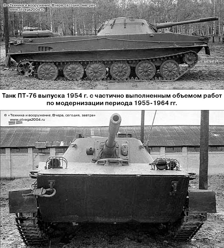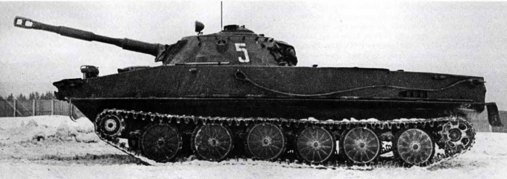 A picture of PT-76 Mod, 1962. This is a post-1964 upgrade, as it is fitted with T-54/55 fuel tanks.