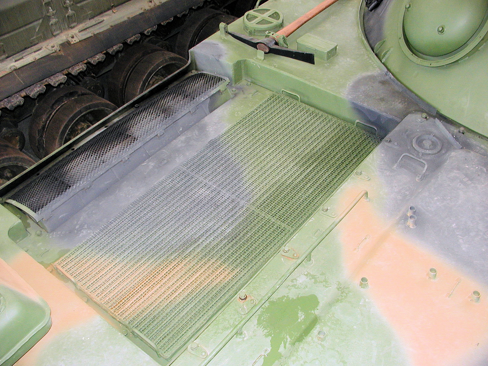 Starting in May, on the roof of the engine-transmission compartment (MTO), the T-34 cylindrical auxiliary fuel tanks were replaced with two flat auxiliary tanks (taken from the T-54/55), each with a capacity of 95 liters. These tanks were not connected to the engine’s fuel system.