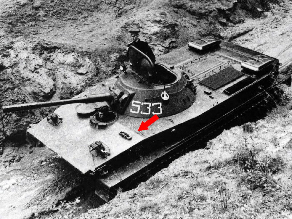 (note- STP-2P stabilizer was also used in T-54B and T-55 tanks. but PT-76 Stabilizer system is much smaller.)