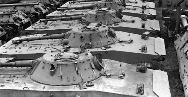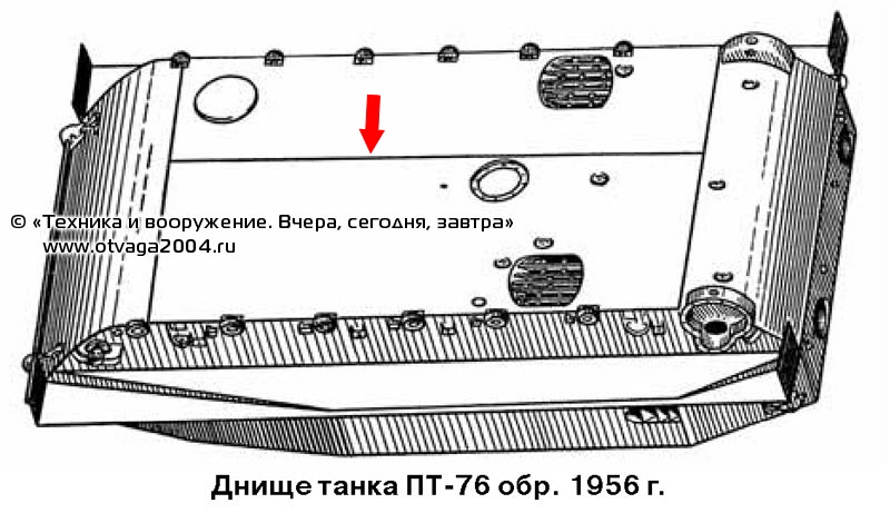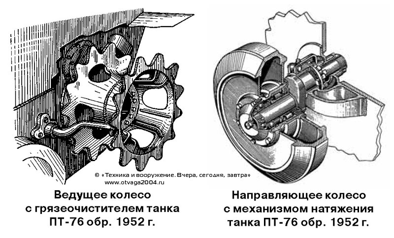 - A newly designed turret rotation mechanism with a backlash‑eliminating device; as a result, the toothed ring of the lower turret race was made 25 mm higher than on the original PT‑76.