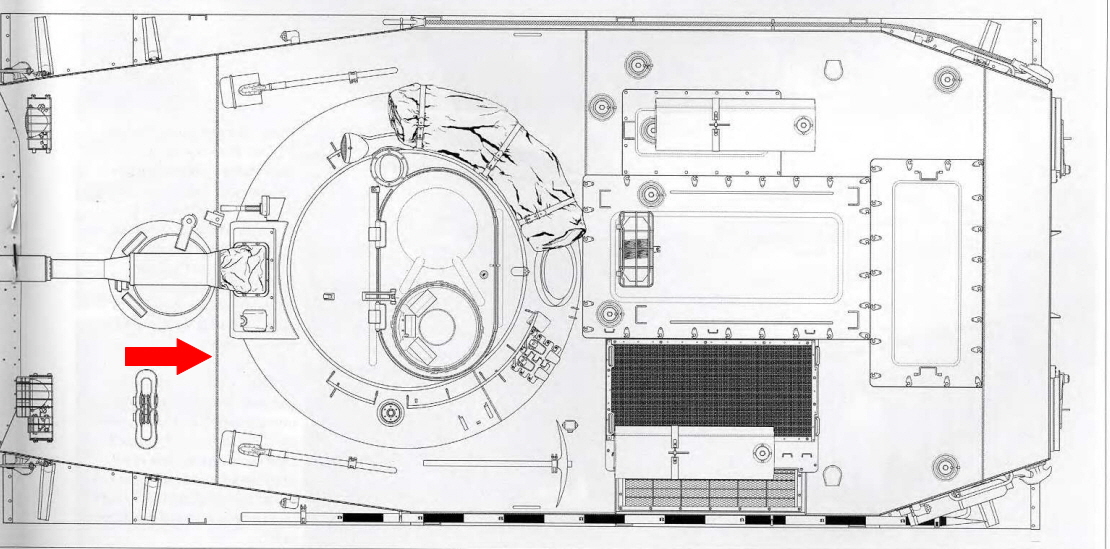 - A protective guard for the gun on the commander’s side, and a contact block linked to the driver’s hatch handle.(If the driver’s hatch were open or locked, the turret can not be traversed.)