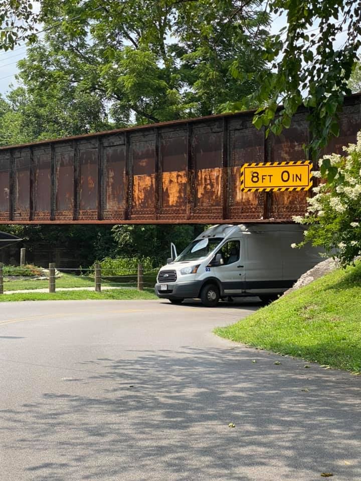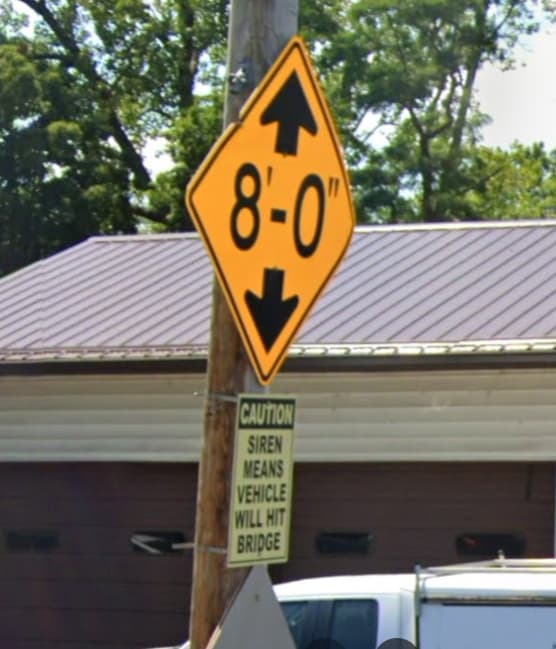 I like the 11â8" + 8 bridge in North Carolina where the railroad placed a heavy decapitator beam in front of the bridge. People still complain on various forums: âWhy doesnât somebody DO something!â Remove the bridge, lower the street, add some sort of automated crossing gate, station a traffic cop there, pretty much anything BUT âDrivers should pay more attention.â Somebody, perhaps the state highway engineer, said. âAs far as the railroad (the owner of the bridge) is concerned, the problem is solved because the crash beam prevents the bridge from damage. The people wrecking their vehicles are not their responsibility or concern.â