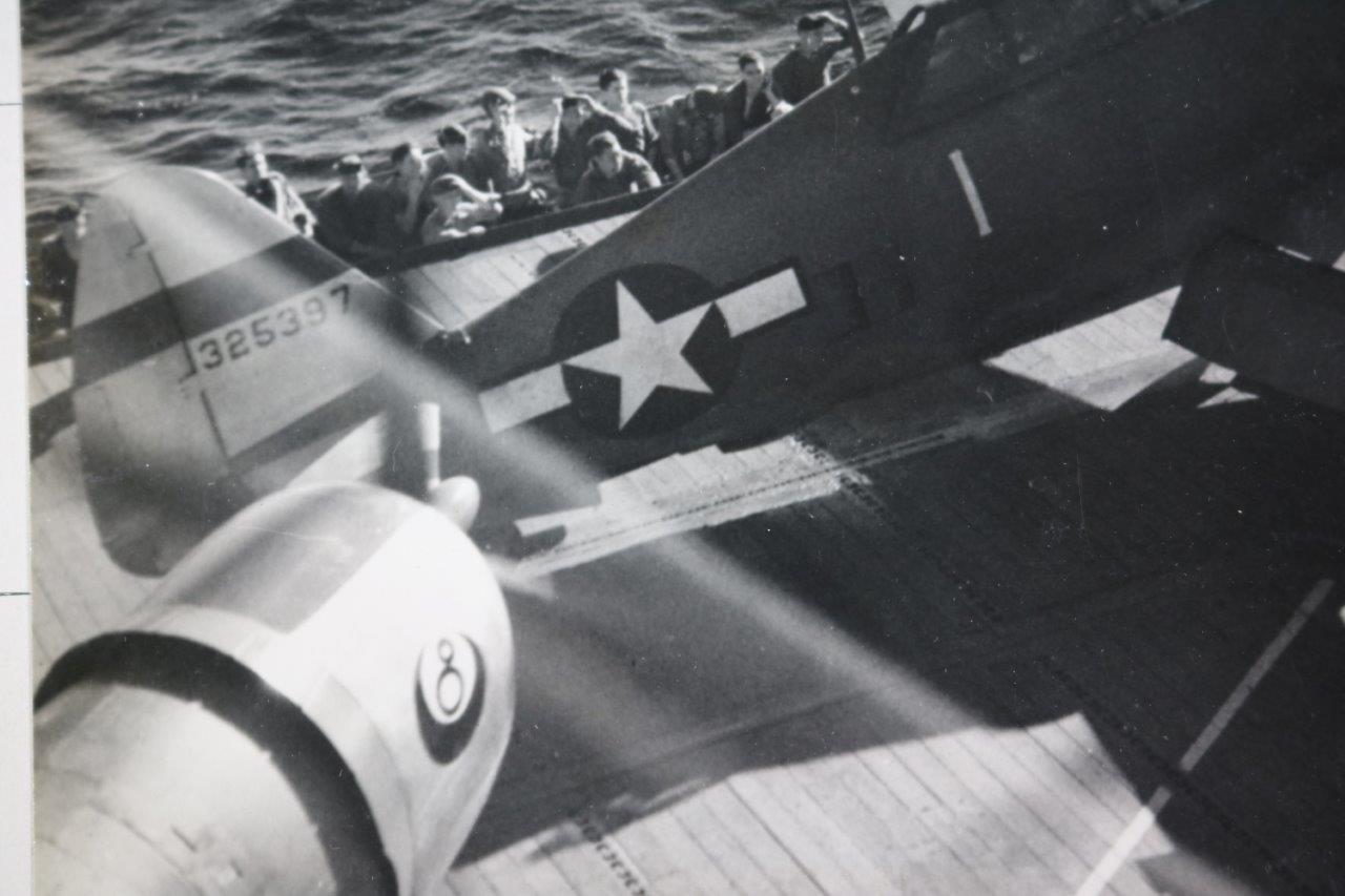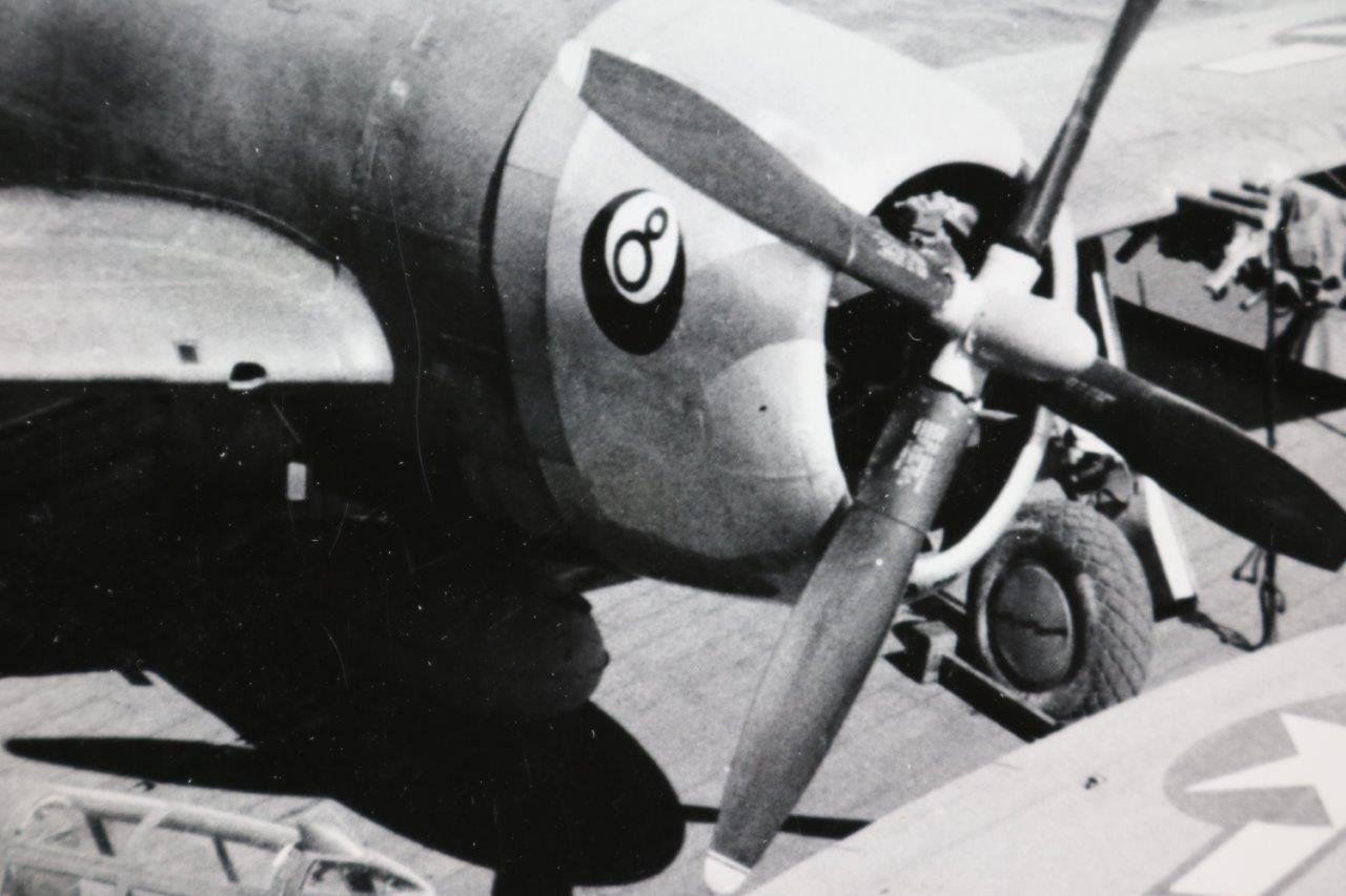 Norris also sent me a couple of images of â8 Ballâ taken on a carrier on the way to Saipan which show the prop blades, and the following info.