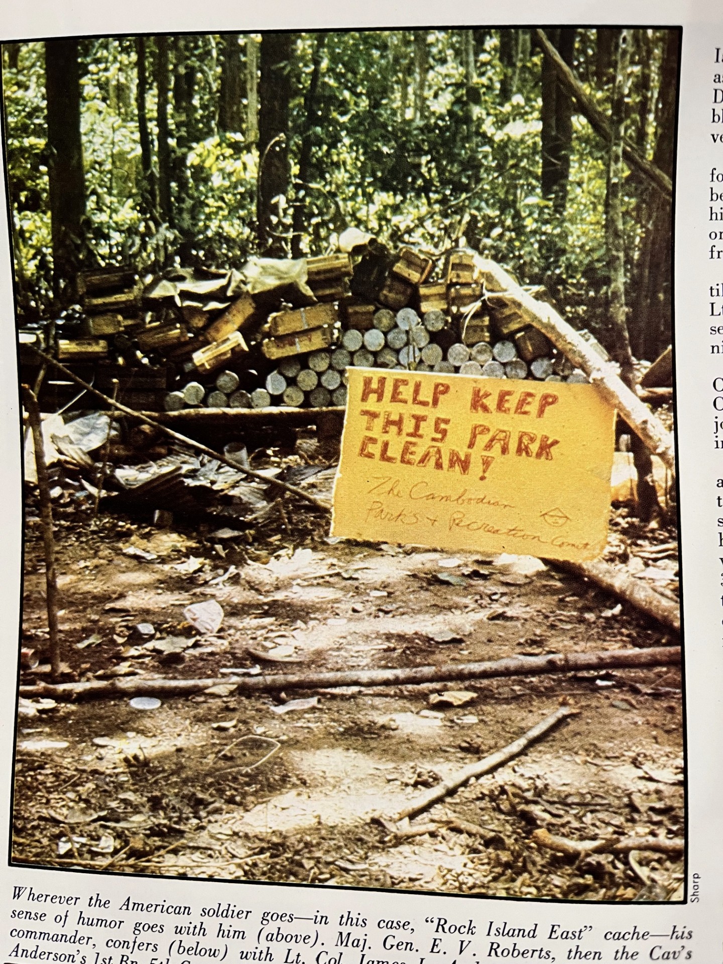 The following photos were all taken from copies of the 1st ‘CAV’s in-country magazine, “First Team”. They are all from articles and photo layouts of the Cambodian Incursion. Most are from “The City”. Note the photo with the “Shakey’s Hill” placard. That hill was made famous from the John Laurence CBS documentary “The World of Charlie Company”.