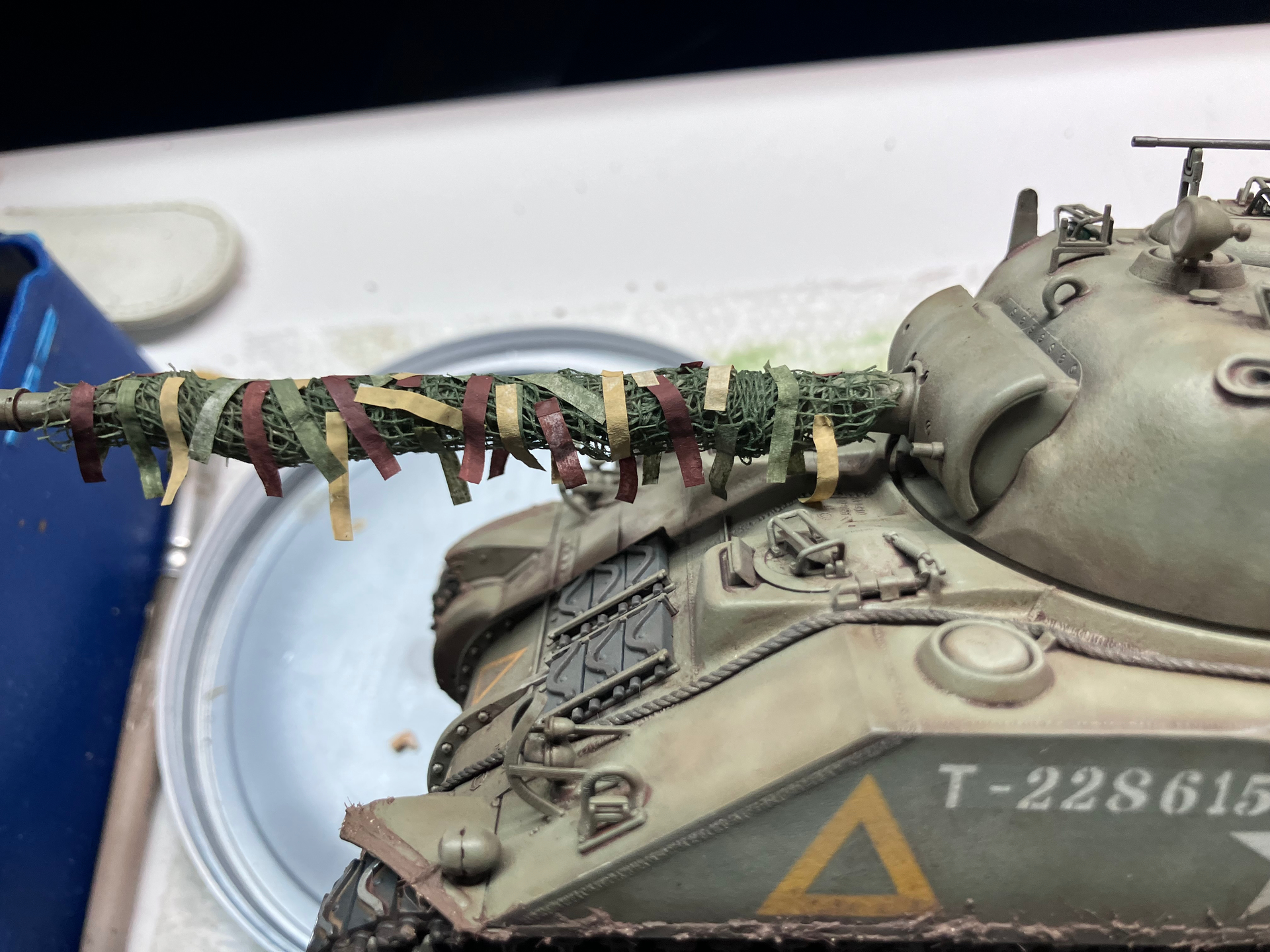 The main issue I see with them is that they appear like they’re stuck to the outside of the camouflage net, when, IIRC, they would be woven into that net on the real tank.