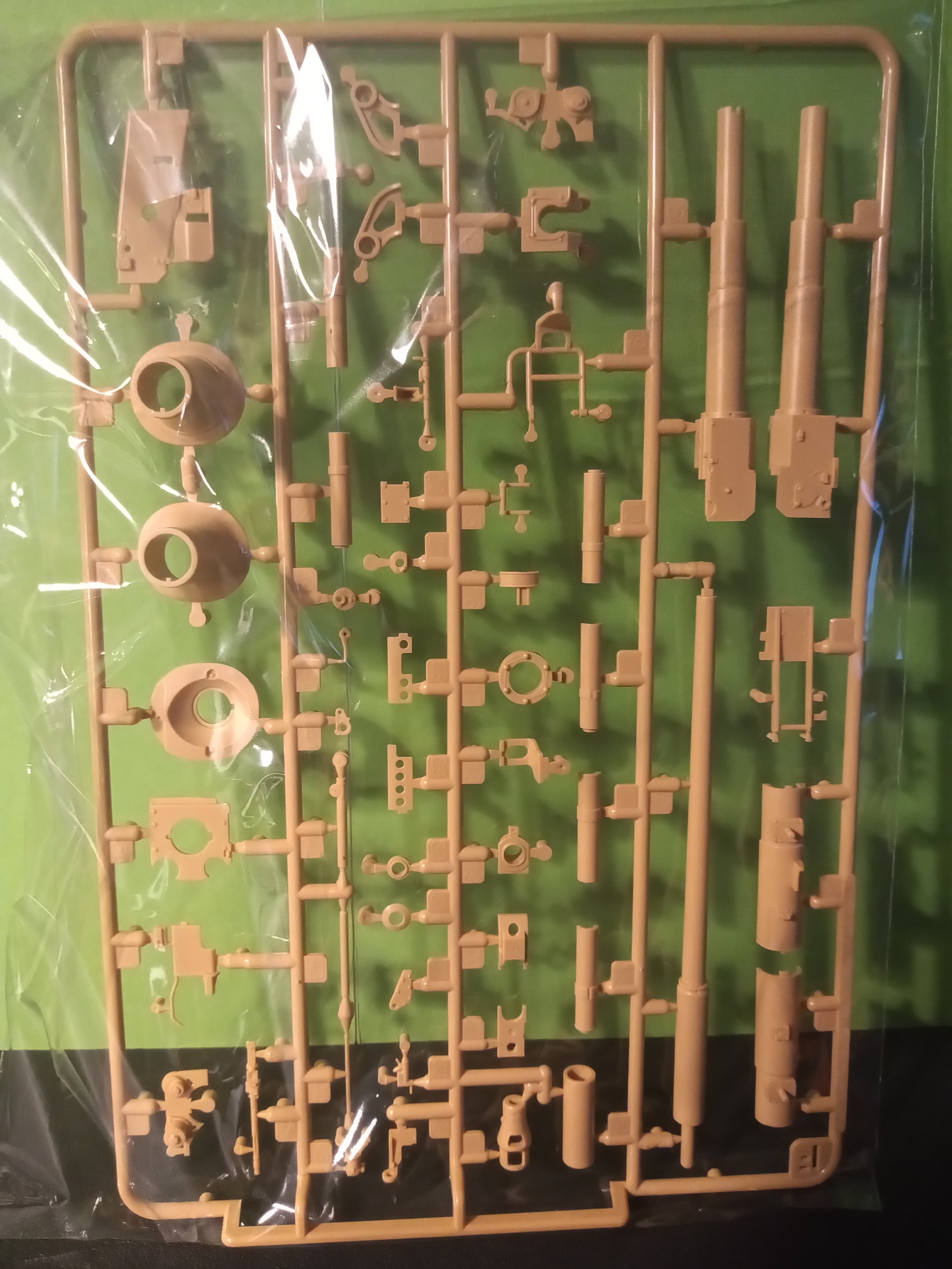 Kit includes a nice metal barrel as well as a one piece plastic offering on a sprue. There is also a nice PE fret, which has all the engine grills and a lot of other extra bits, such as the handles for all the brackets for the Veh tools and the covers for the barrel cleaning rod mounts. A good clear sprue with all the vision blocks and a 3D printed muzzle.