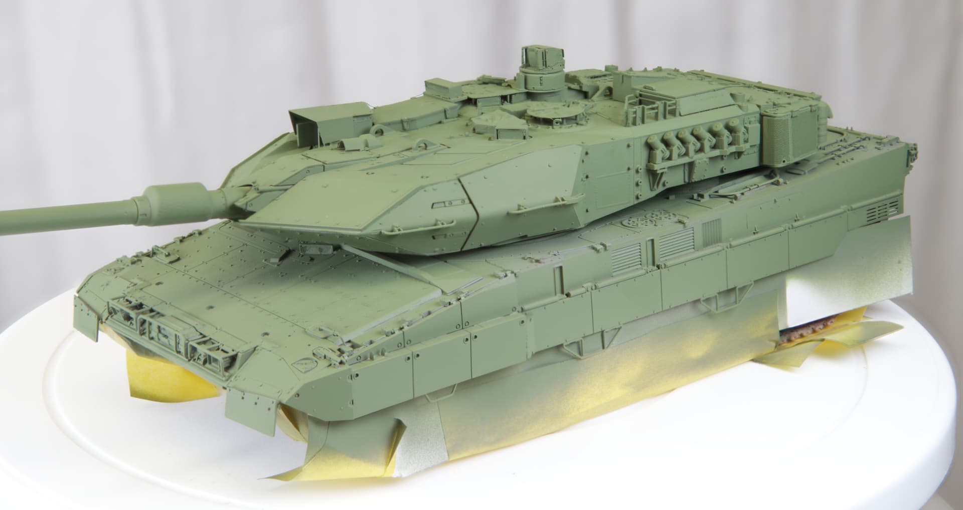 The green is XF-67 NATO Green +XF-3 Yellow + XF-21 Sky, the brown is XF-68 NATO Brown +XF-52 Flat Earth and finally the black is XF-69 NATO Black +XF-21 Sky.