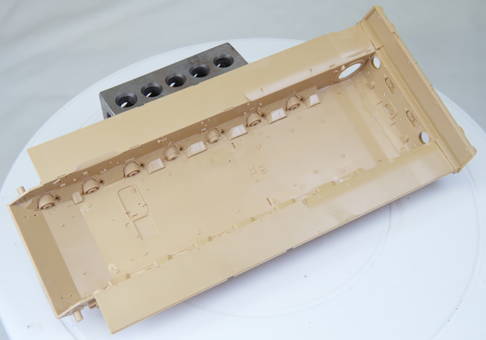 I left the baskets that go hafway along the turret off because I knew there was going to be a decal there and it would be very difficult to place it after fitting.