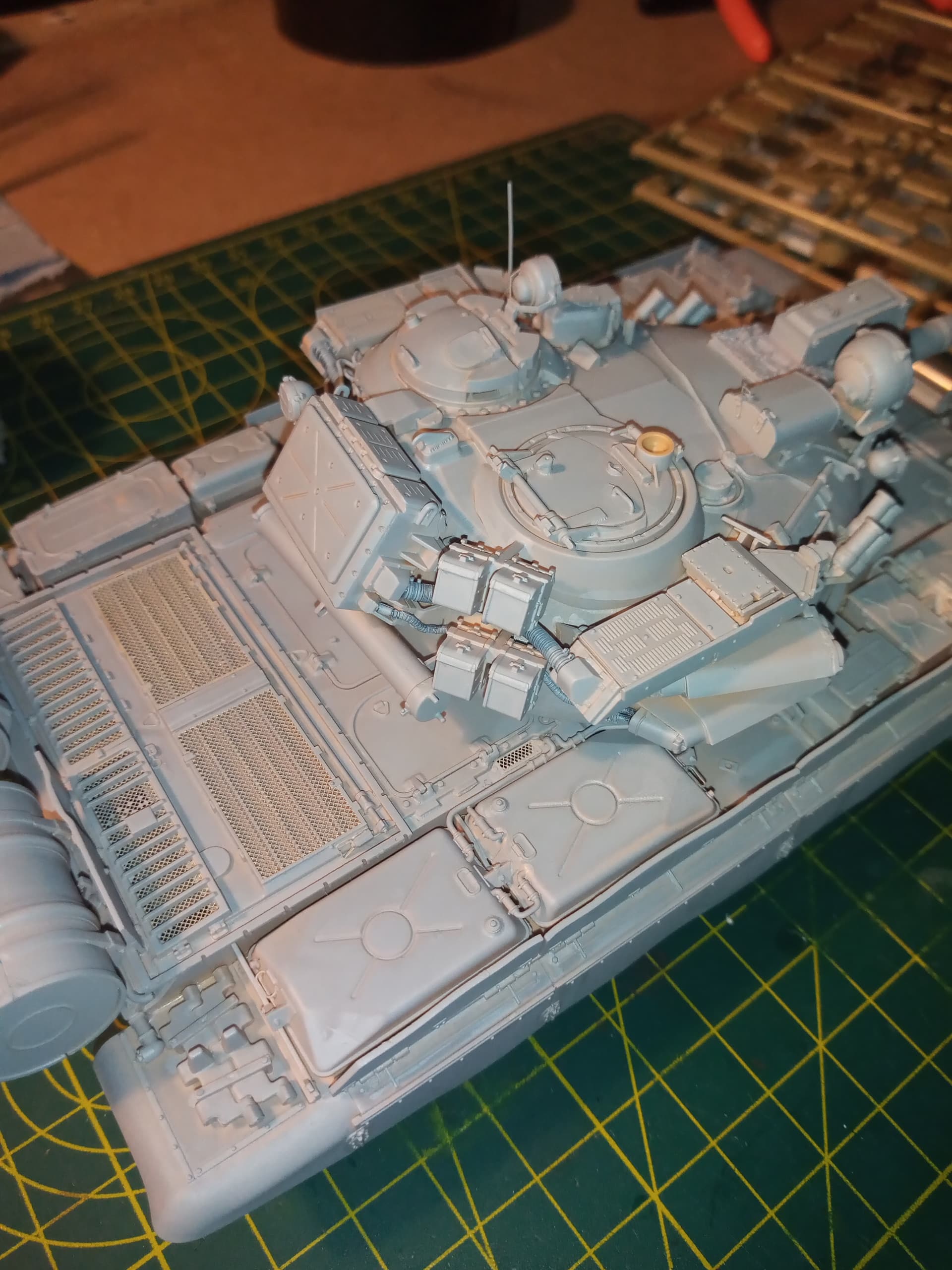 Night Porter? Nice job! It’s funny how no matter how much “extra time” we’re given (being retired) we always encounter things that take up our free time! Whether we want it to or not. My daughter has gone back to work so I am now grandson - watching FIVE days a week. I’m not sure how I solely got assigned this task, aside from that the boys are very fond of me, but up until Saturday I hadn’t gotten to the bench in 6 months! I had to dust it off. I was all settled into retirement, with all my affairs in order, and along come grandsons. They are now 4 and 6, so I’ve got years to go. They are still a little too rambunctious for models. Trying to find bench time? There’s always a phone call, or an email, that asks me to do something for someone. Ah well, the best laid plans, as they say. I’m trying to establish a daily schedule that doesn’t interfere with dinner to eek out an hour a day for the bench. So that’s my day,and I know yours. Sorry for the tangent John. Keep building this T-55 is coming along brilliantly!