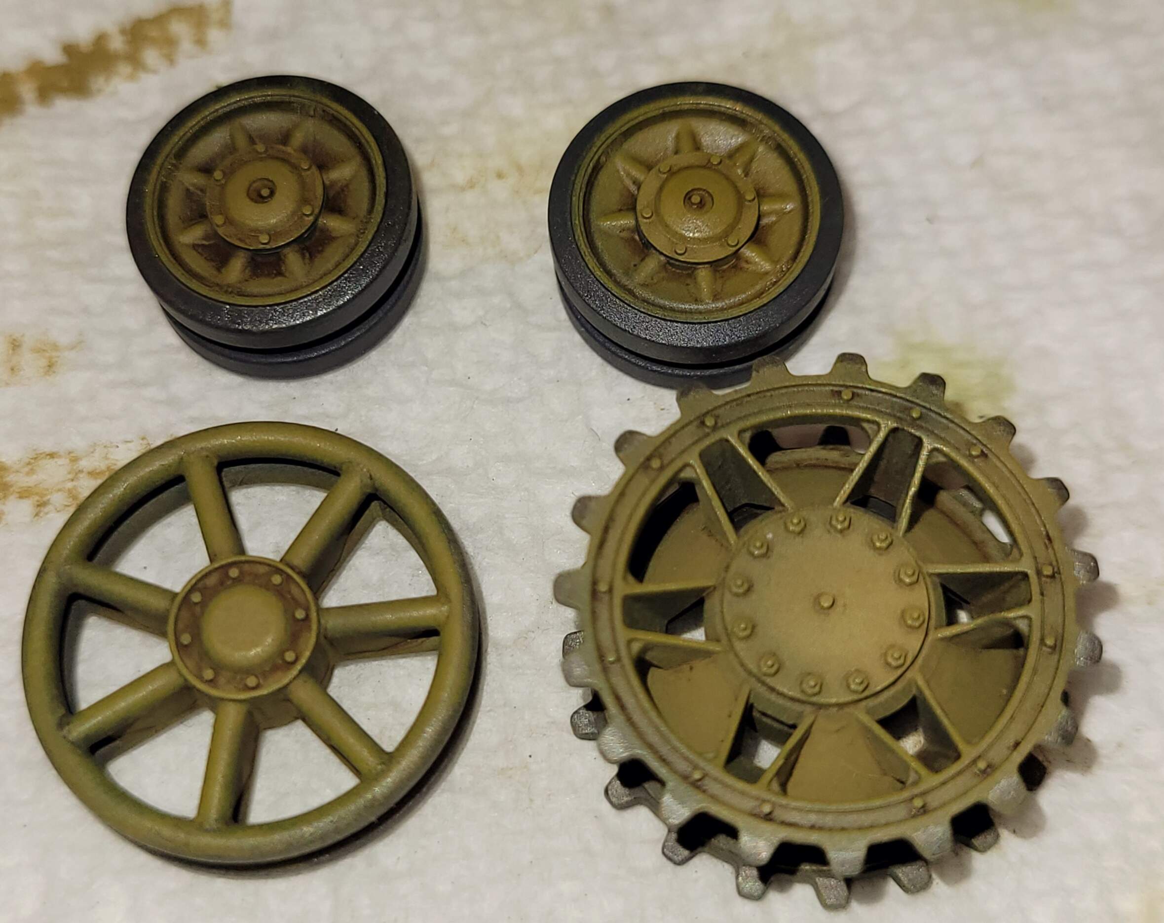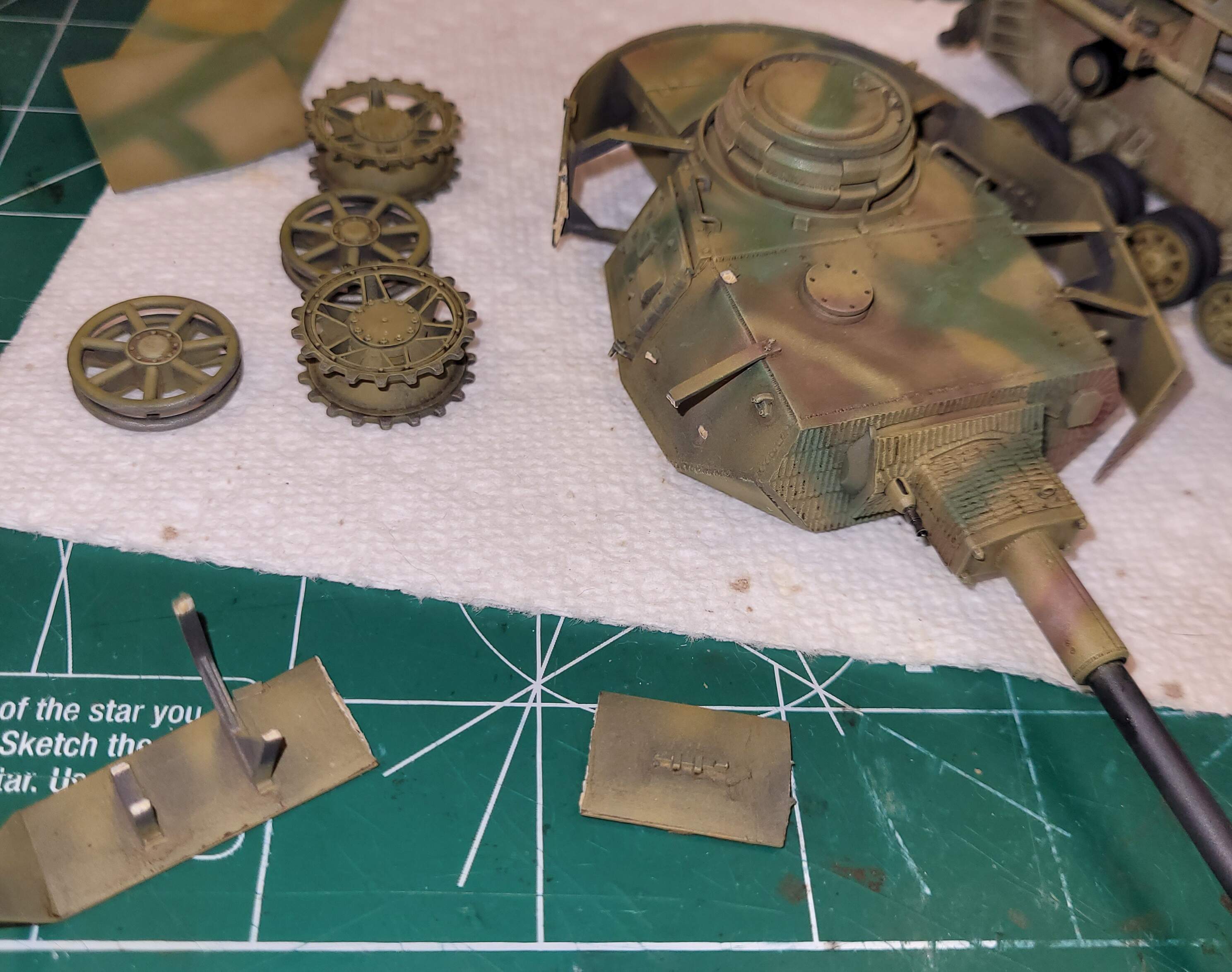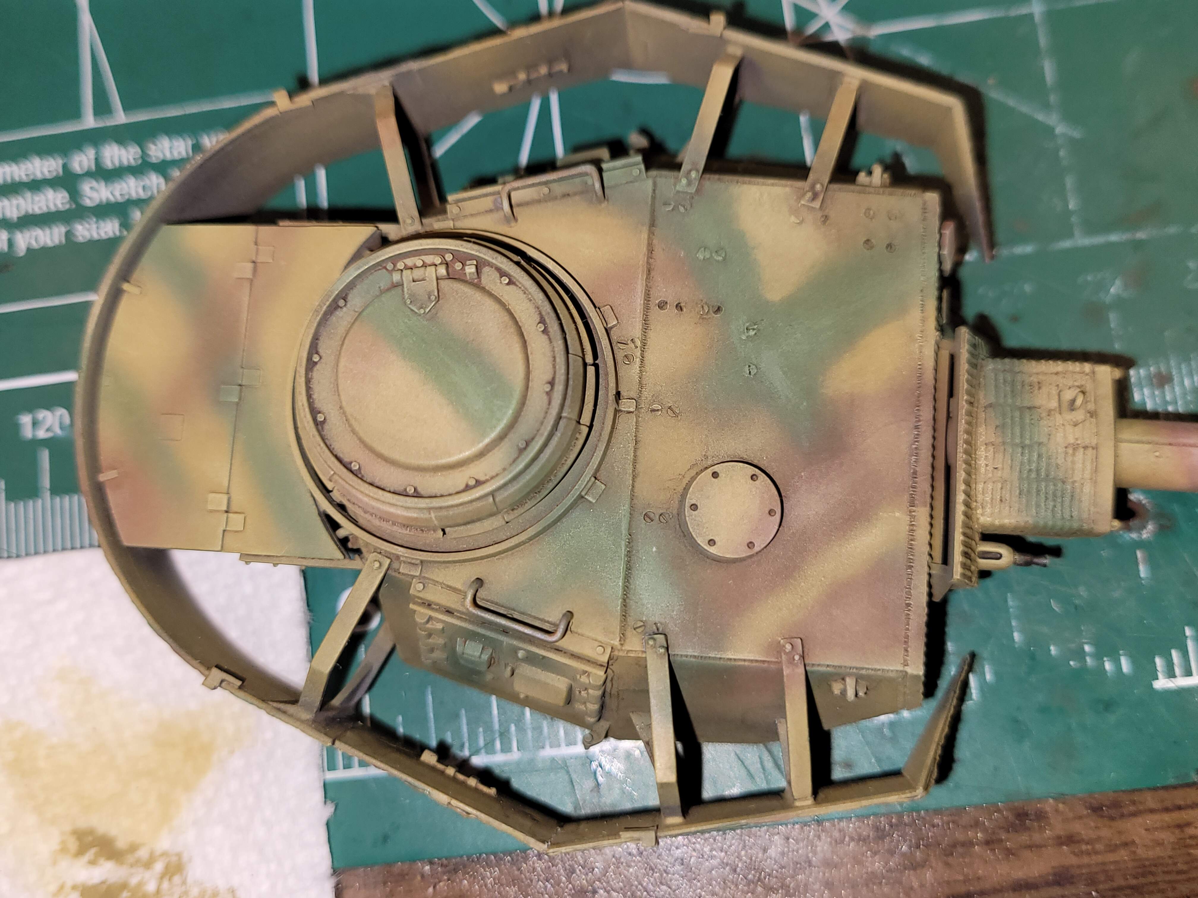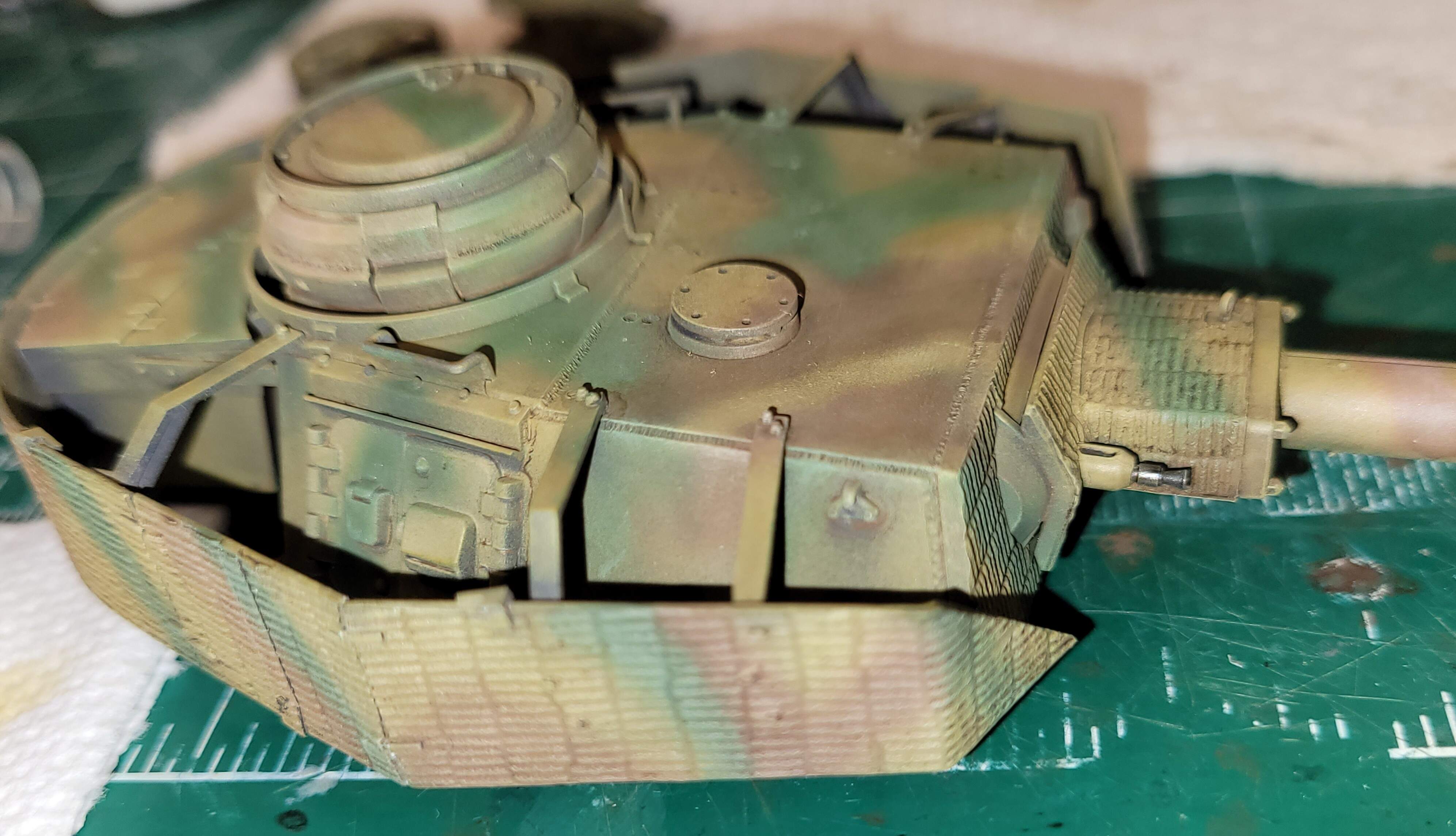 Late last Saturday, the sticker Zimmerit lifted on the H’s turret skirt door…went to press it back down…the turret skirt broke…it had aligned perfectly when assembled and fell right into place…just a touch of Tamiya Extra Thin to seal the deal…I knew that was way to easy…lol…the J’s turret skirt was more of a battle and required slow setting Testor’s to get tweaked into proper alignment…the J’s skirt also seems a lot more solid