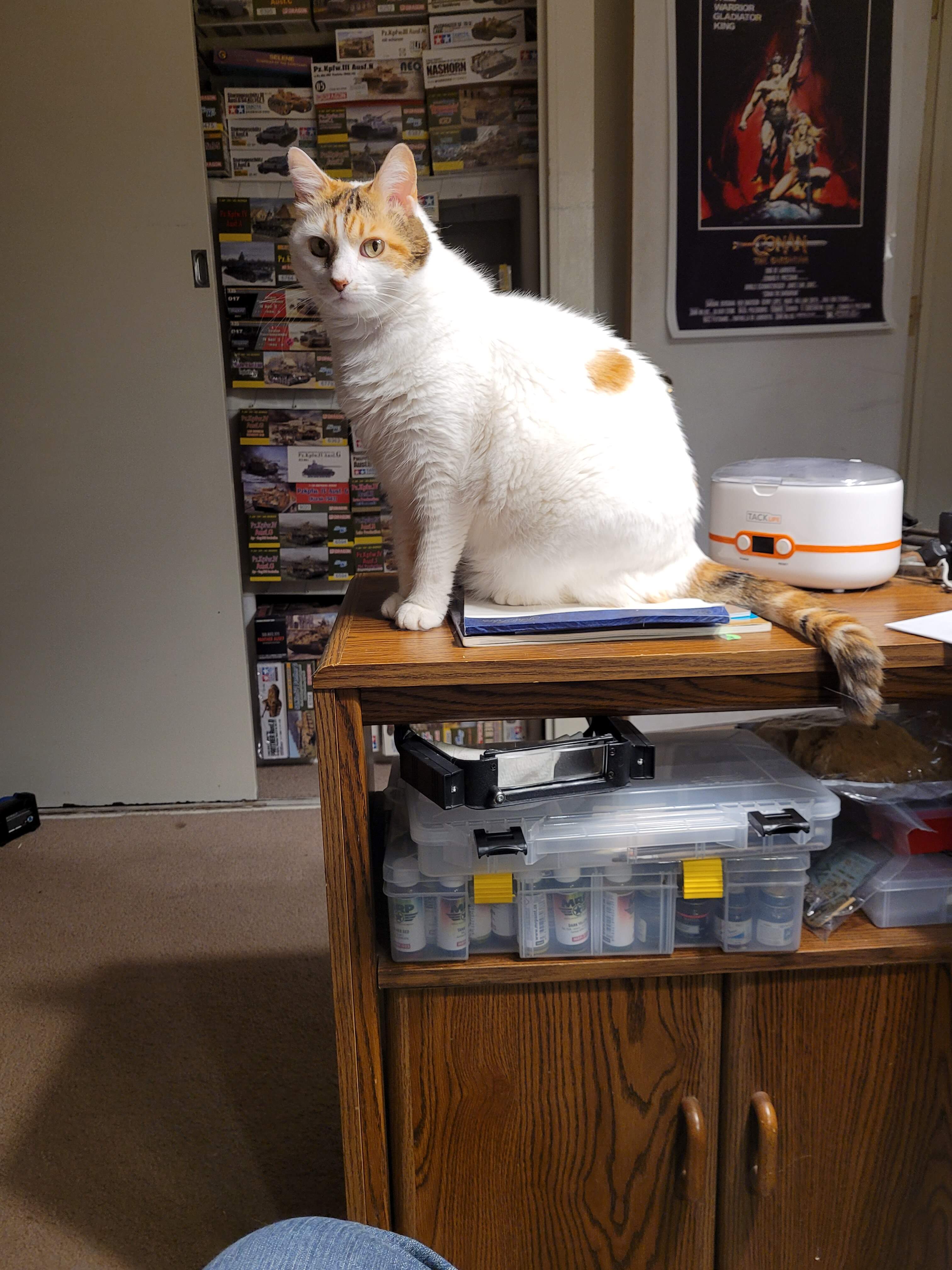Had to take a (no pun) break from work bench for a few days and chill out. No more sticker Zimmerit for a while. Fixed the lifted spot with super glue. Fixed the skirt with Testor’s Liquid Cement as more time needed to tweak into place this time around.
