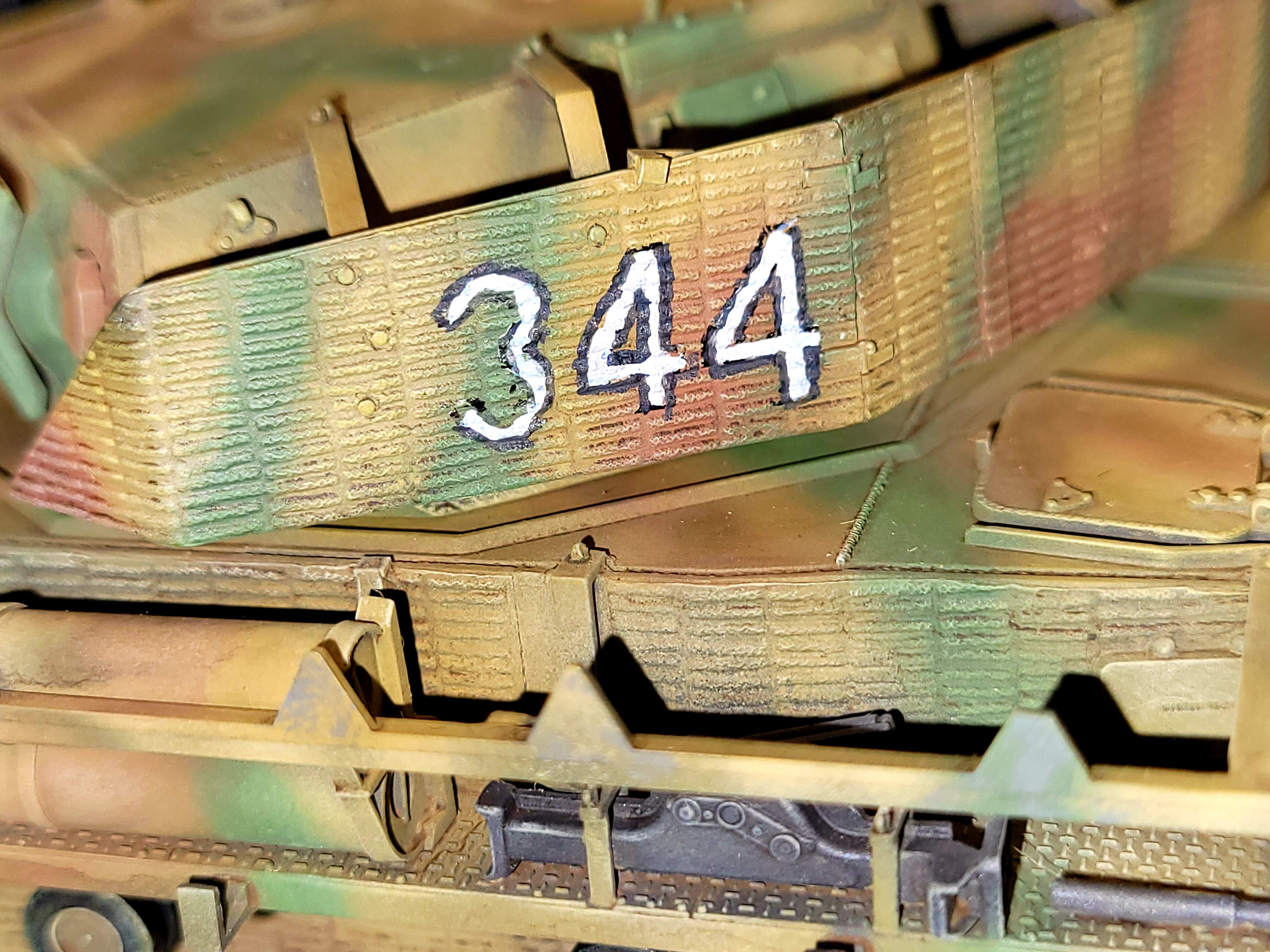 Good catch! I really like the paint job. For myself I’ve given up with any kind of transfers over Zimmerit. I just do it how it was done in real life and hand paint the numbers on. The advantage is it doesn’t matter if it ends up looking a bit rough, it does in real life! In fact you could argue that really neat numbers over Zimmerit don’t look realistic, c.f. the numbers DML provided for their PzIV H which had the HJ marking scheme including the well known “625”.