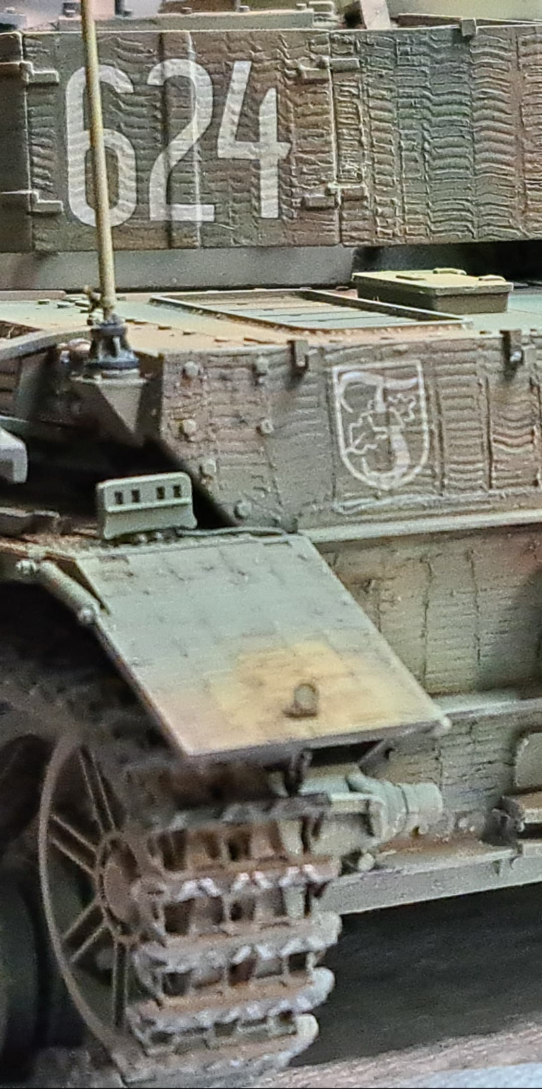 The zimmerit makes a nice grid so it’s easy to figure out exactly what needed gloss coat.