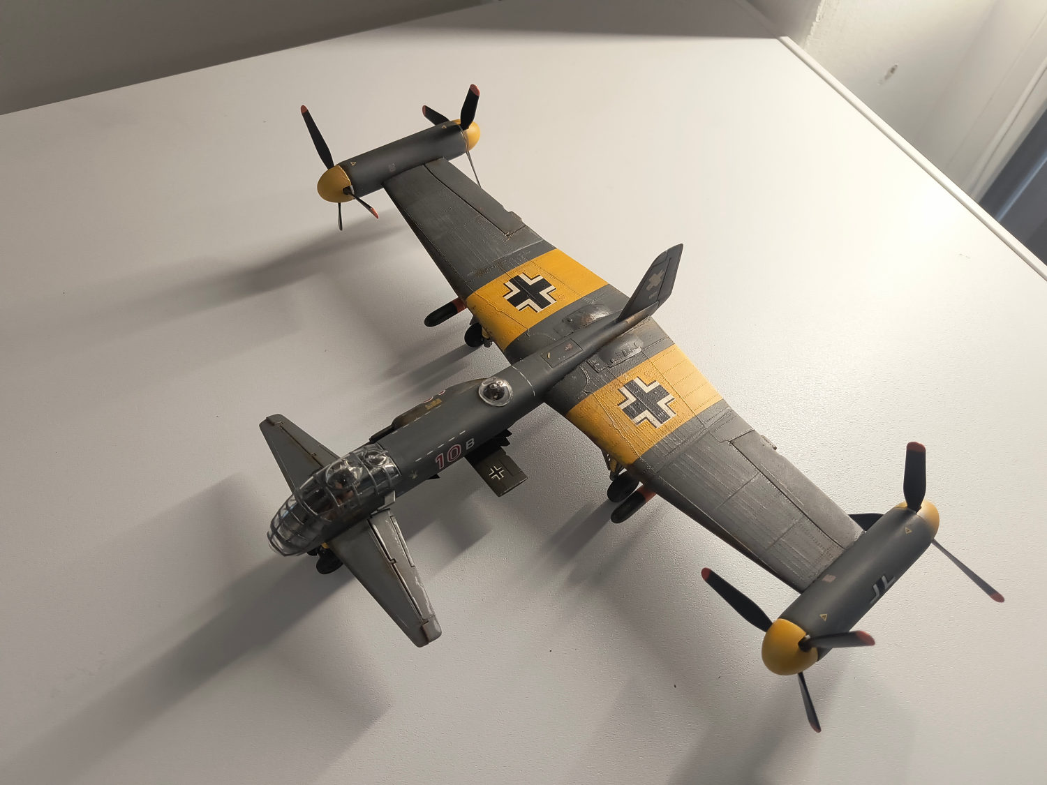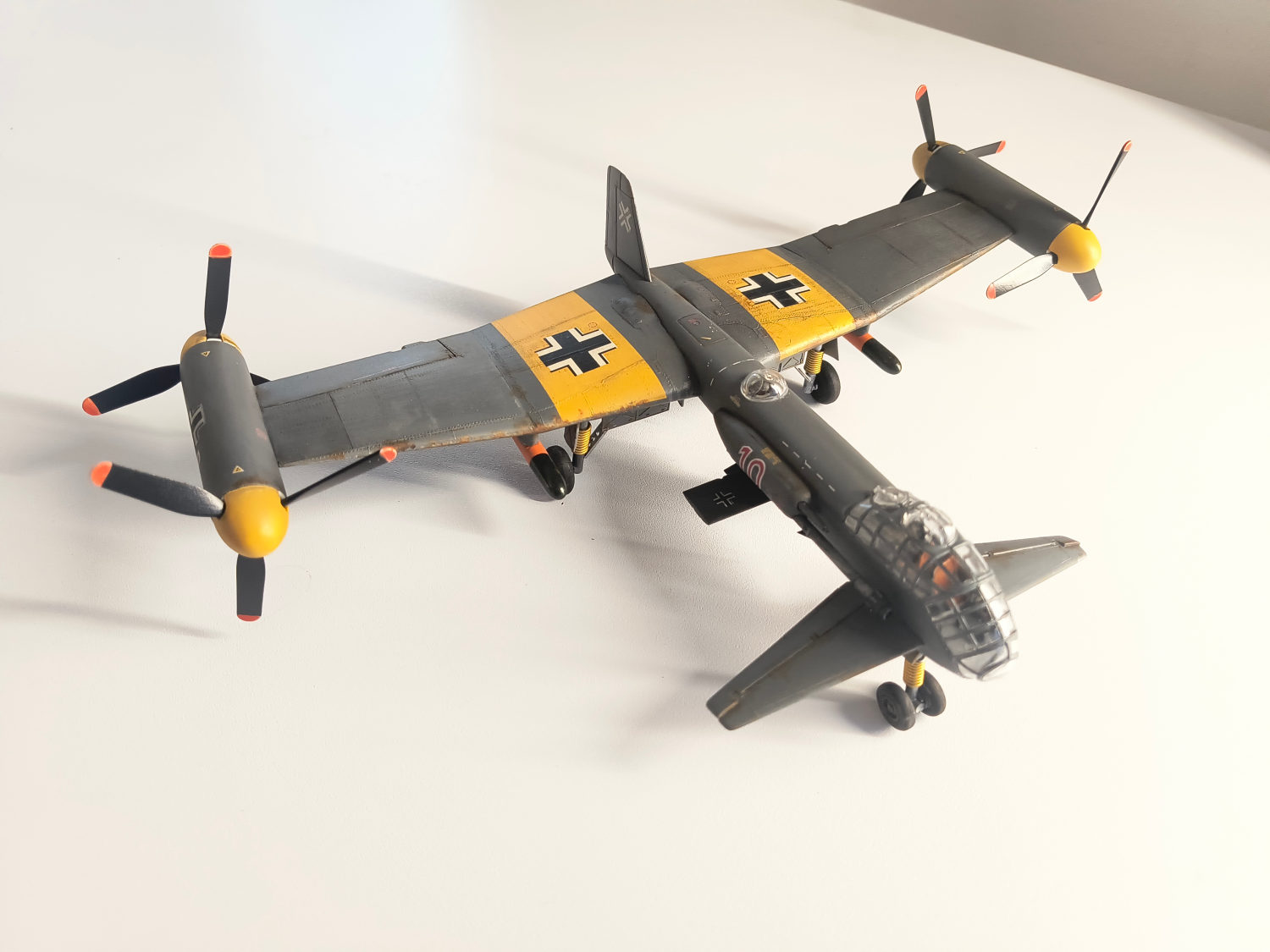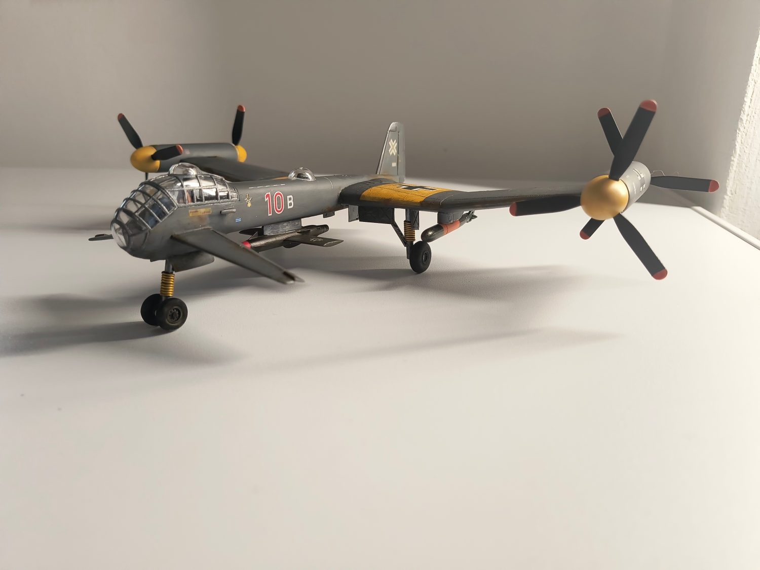 The Junkers Ju-341 Night Gull made its first flight in December 1946 and was already deployed as a night fighter on the Western Front in the spring of 1947. The very large wings and the crew of up to four pilots (sleeping cabins in the rear fuselage) enabled enormously long flight times; the first aircraft, the Rheinmetall K215 double-barreled cannon and the new four-barreled Siemens “Vampire” radar, were already a deadly weapon with the highest accuracy, even in complete darkness.