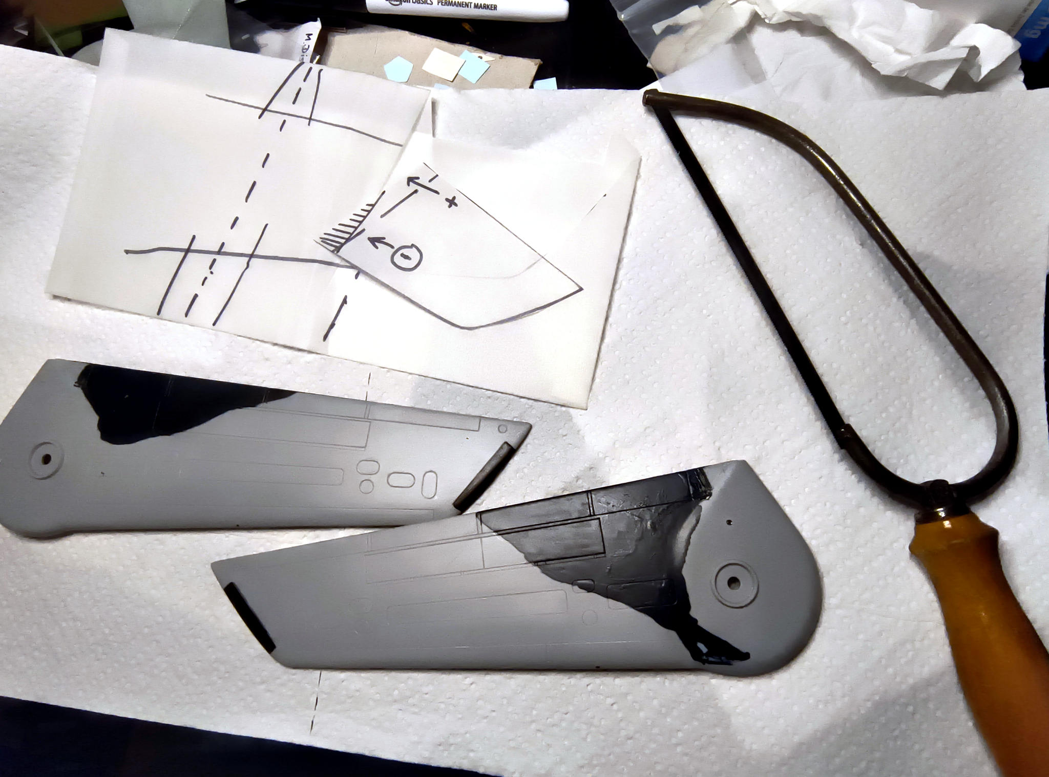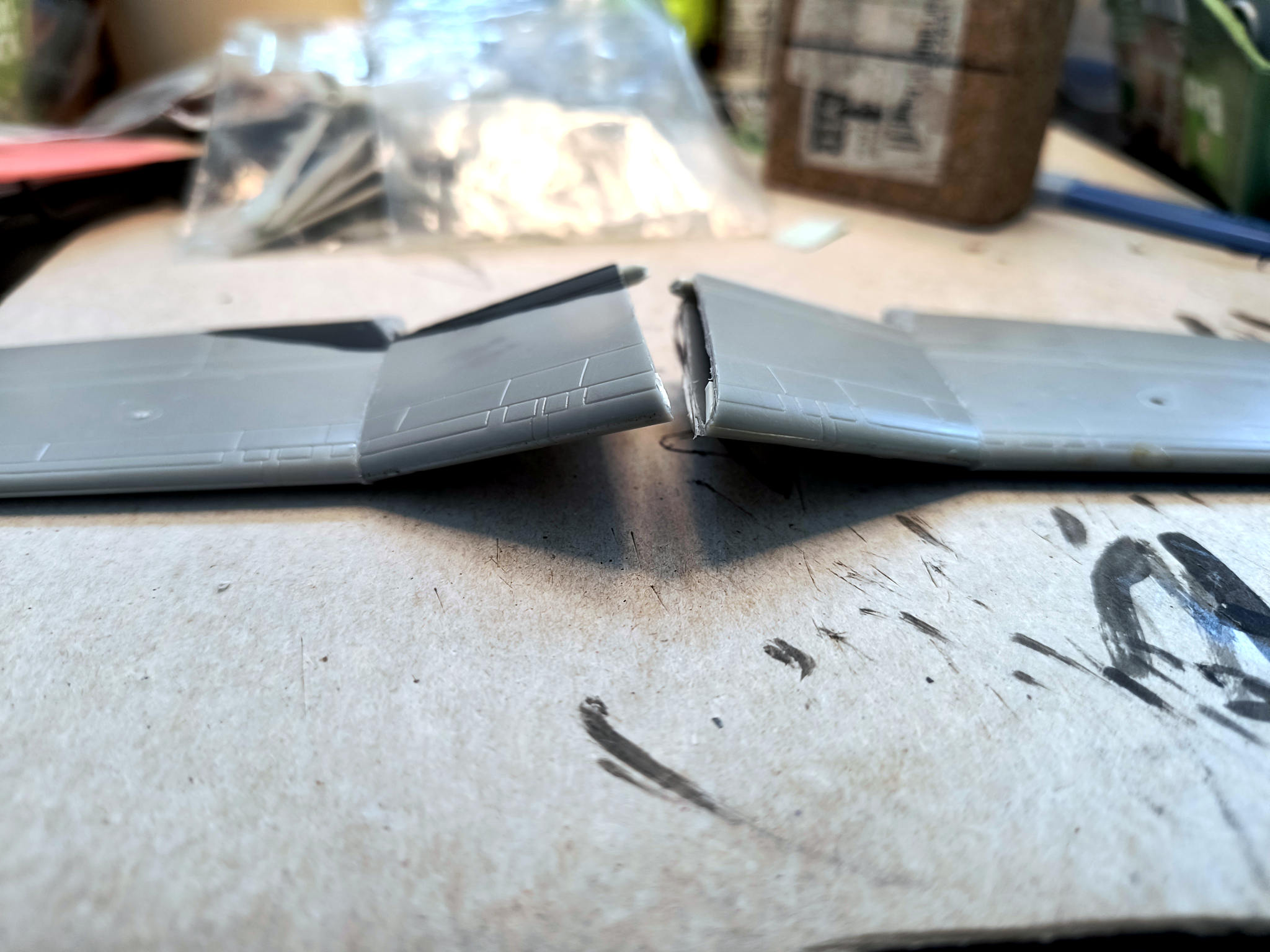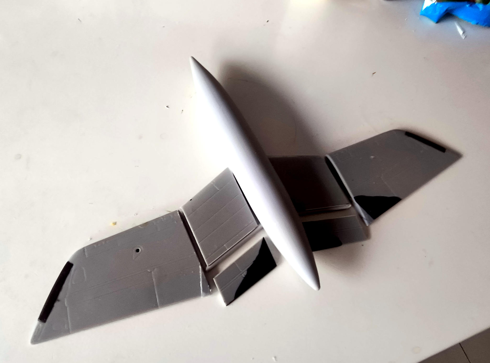 Started with two lost wings from a 1:72 Tornado fighter and a drop tank in 1:32 .