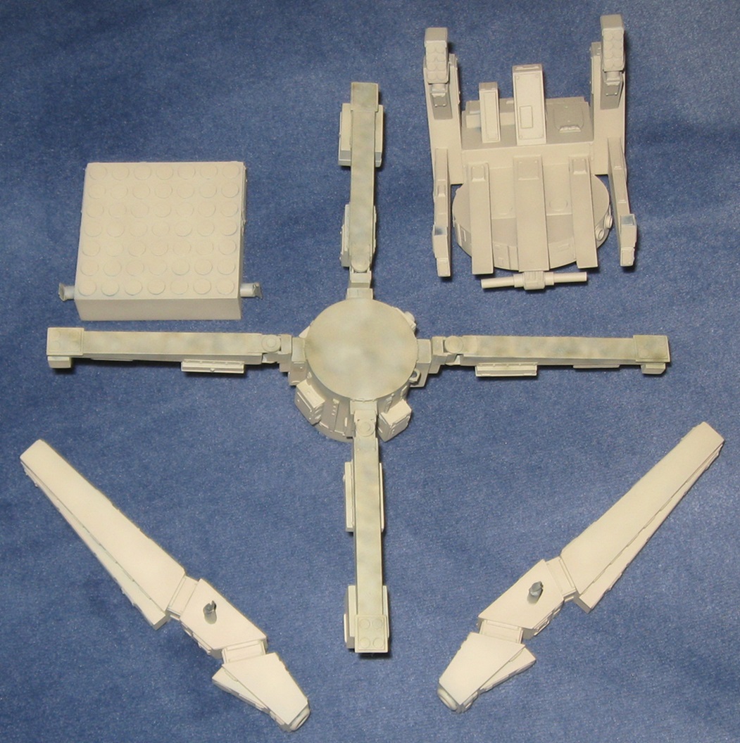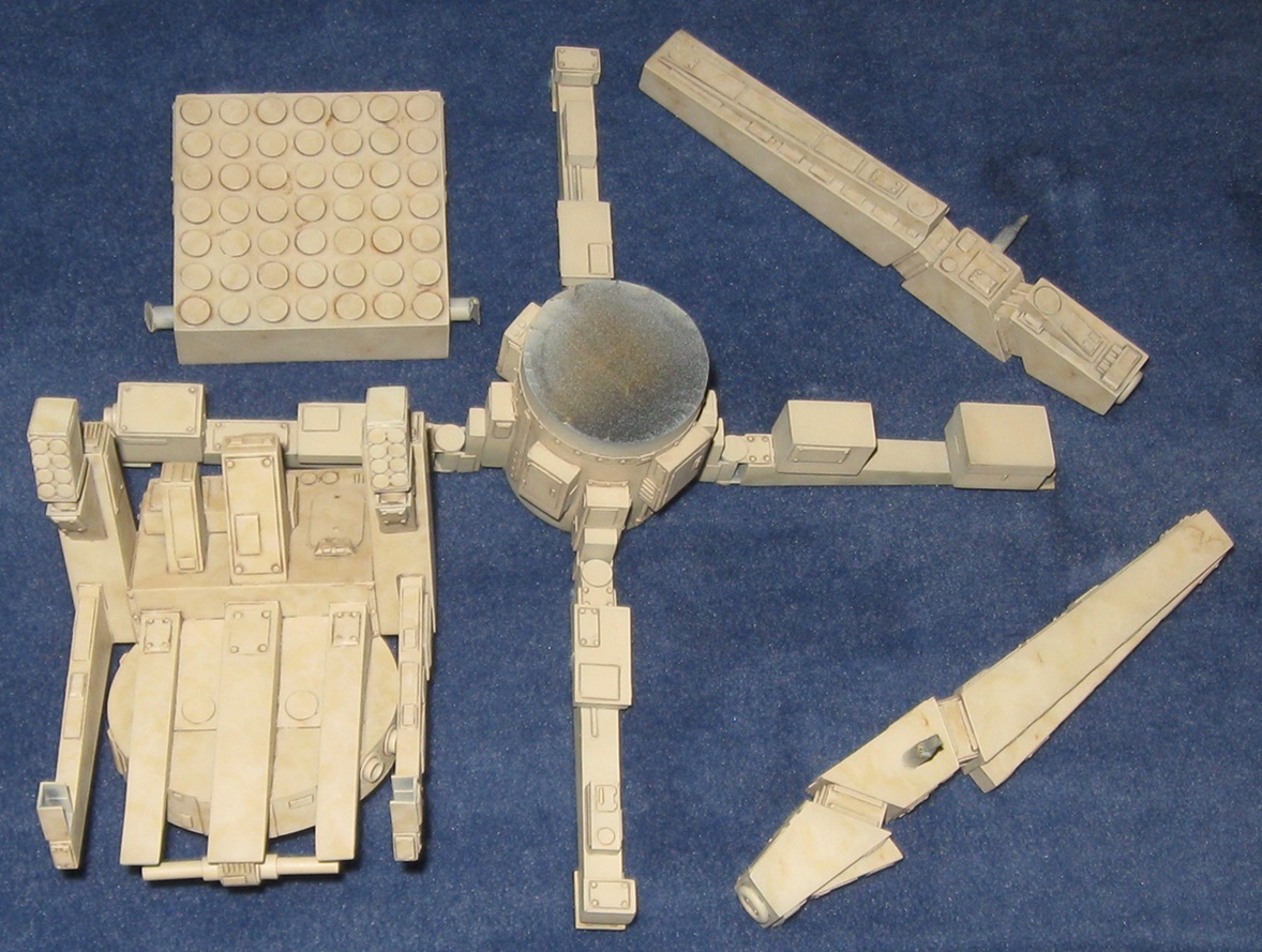 Each unit consists of a composite RADAR detector, two beam energy cannons, a battery capacitor, a power conversion unit, and a cruciform base with power traverse.