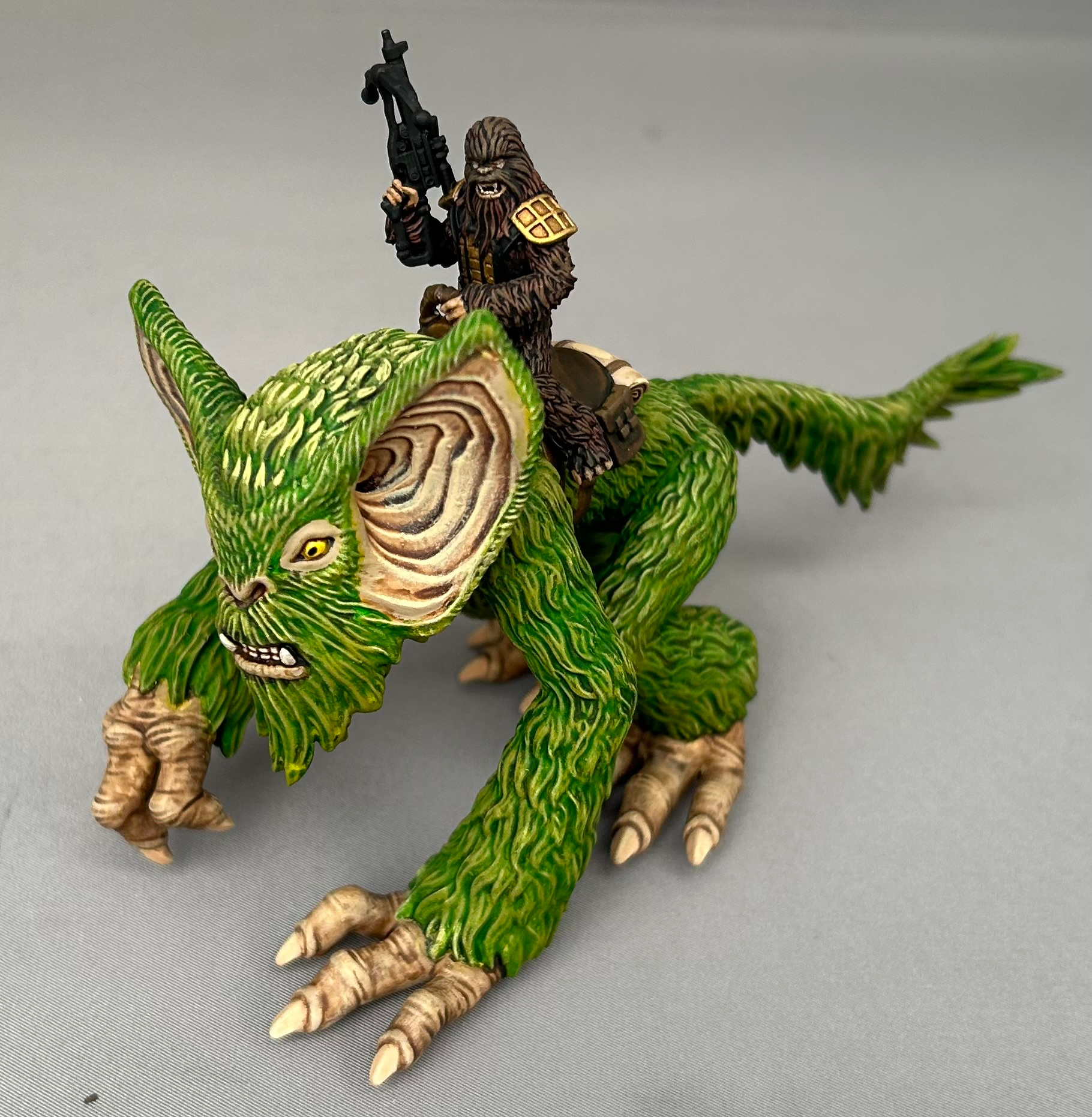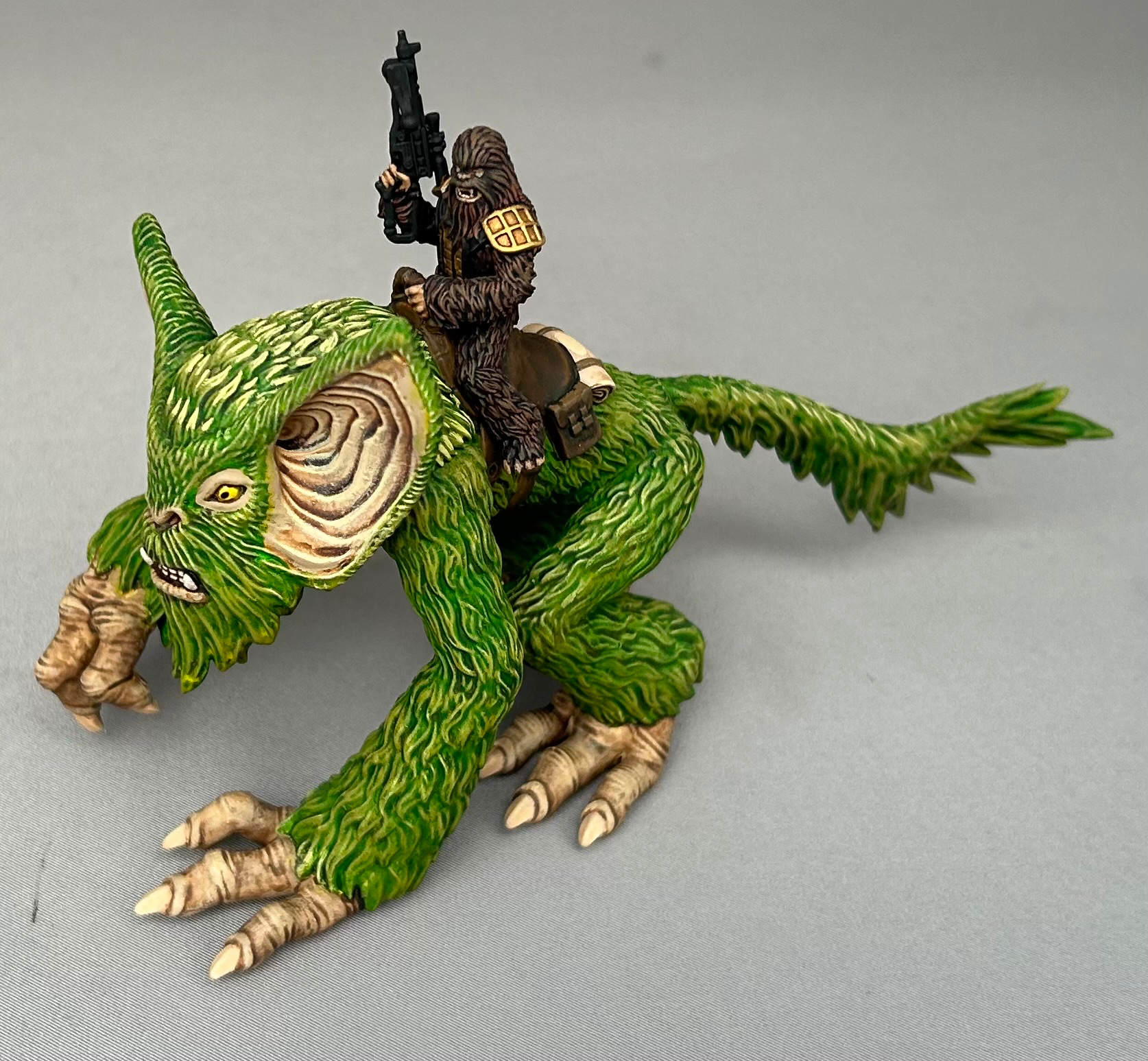 Here is the Wookiee chieftain on his beast. I wondered what kind of beast it is. I have not heard or read about it in the lore, so I guess it is something invented by the 3D designer.