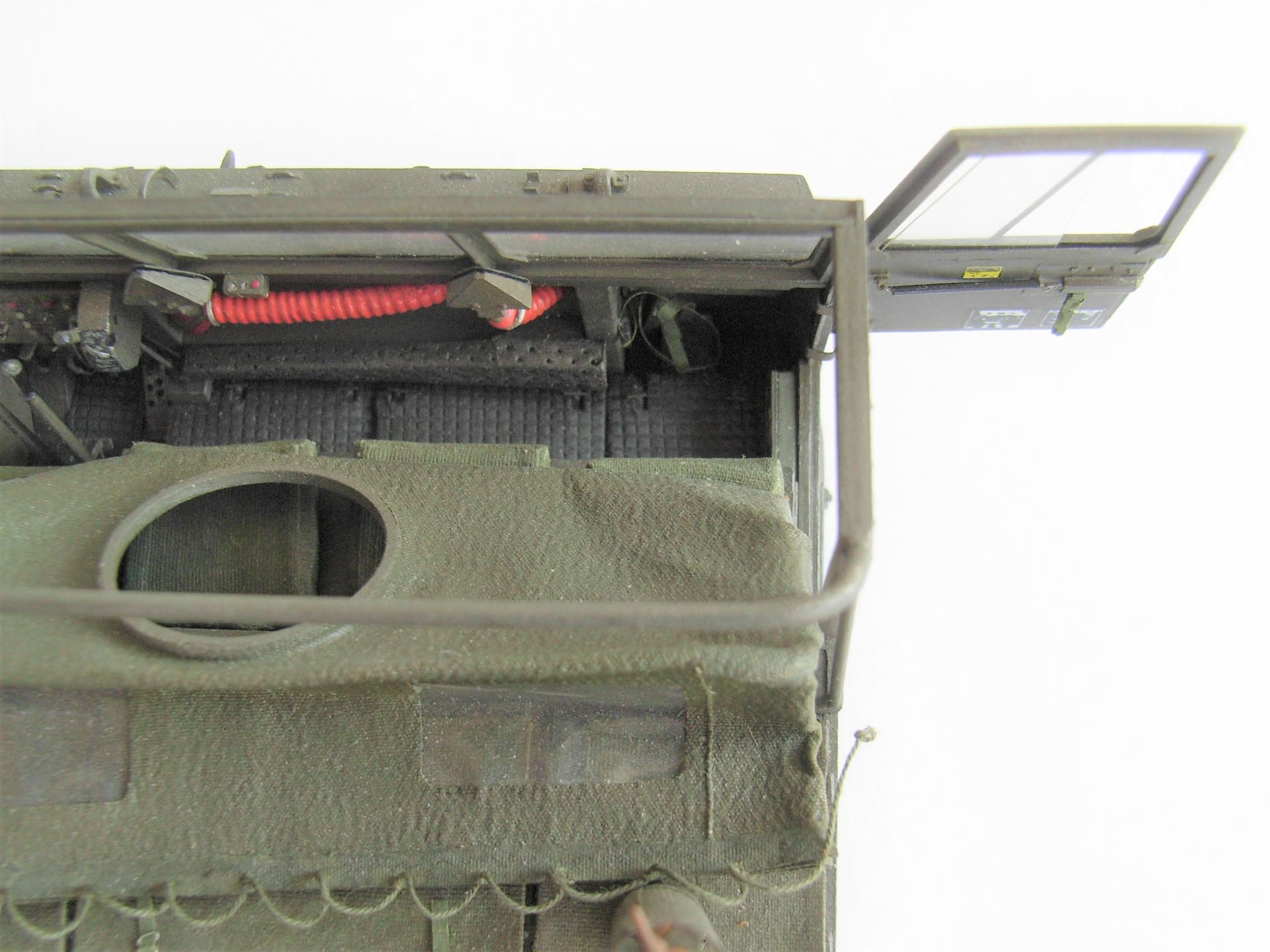 Well, it is installed in the pulled away mode: to spare me the correction of the wrong MG ring mountās rear feet mounting points on the engine deck, with the welcome side effect of a better view into the cab.