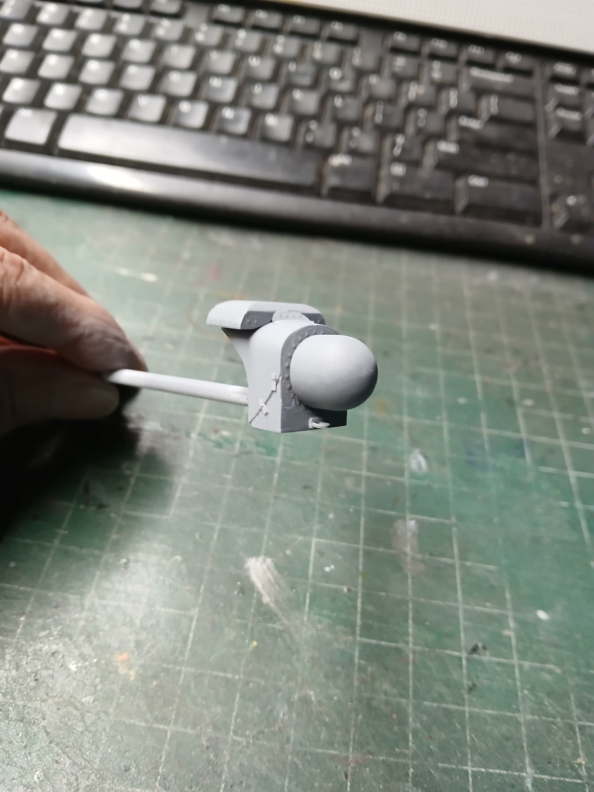 After building the many KH helicopter kits I wanted a newer DAP. These parts will be added to the KH MH-60L kit. Started with a cardboard form, added baking clay and baked. Sanded to shape and primmer to see faults. I still need a bit of sanding.