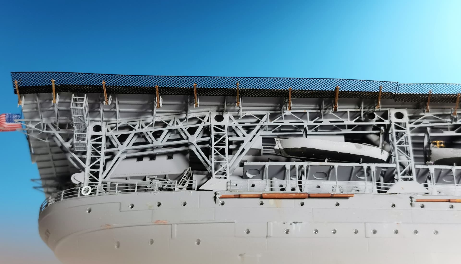 Looking great, love the work on the.boats, stuff like that really adds depth to the build. Nice too see her with the deck down.
