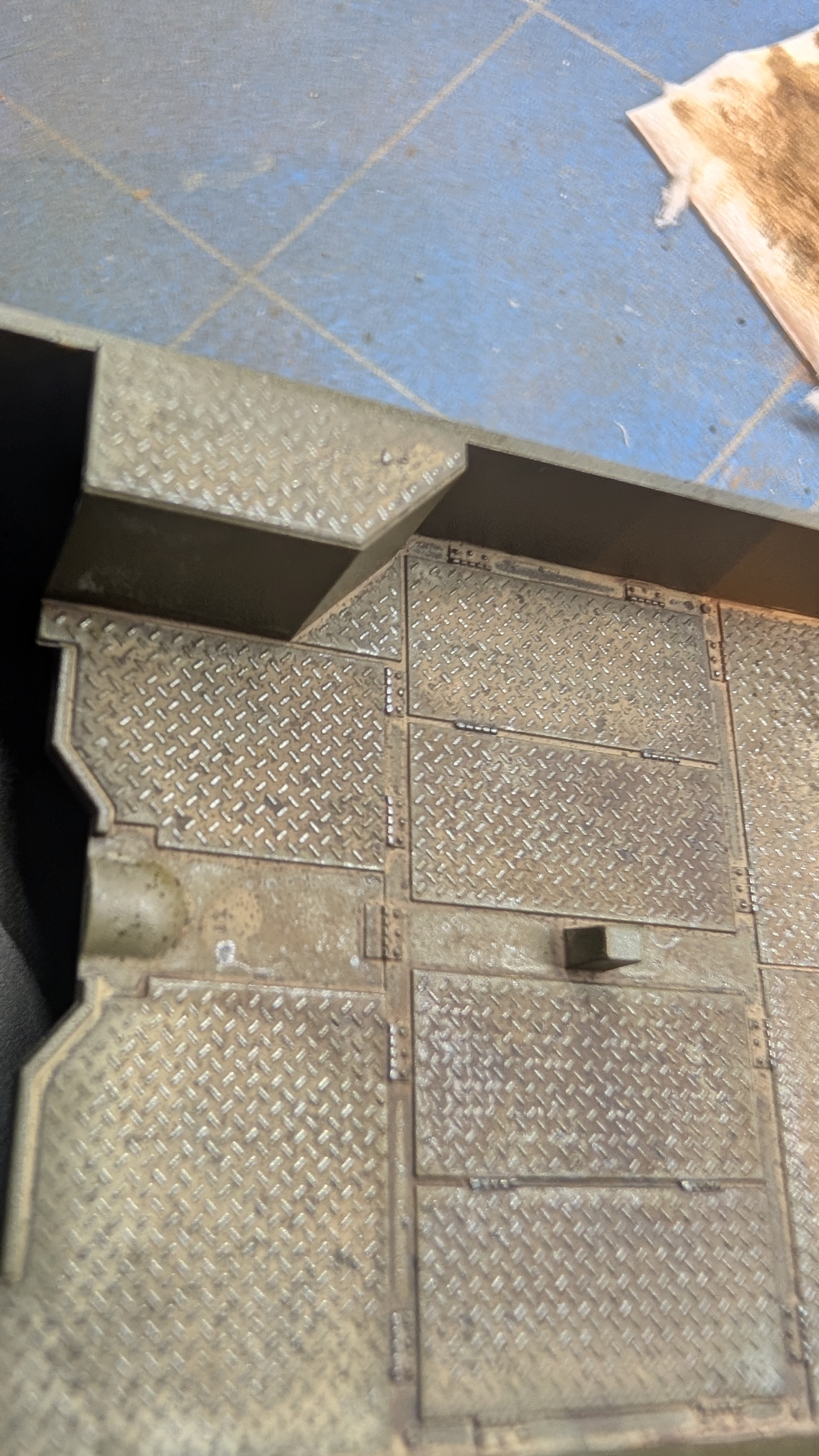 Today I had some time to put in some more work on the floor plate. I added several shades of grime and added a metallic sheen to the treadplate.