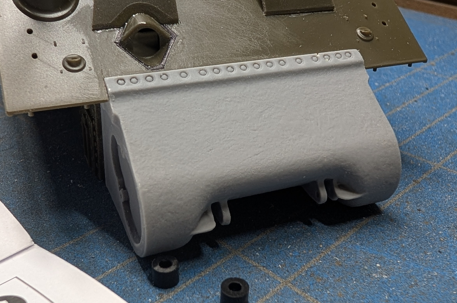 Asuka has in recent times made some small changes to their molds, with some parts now having a subtle cast texture, where in the past these parts were smooth. Since I needed to do some sanding on the turret, some of this texture was lost, so I added some of my own. I also added cast marks.