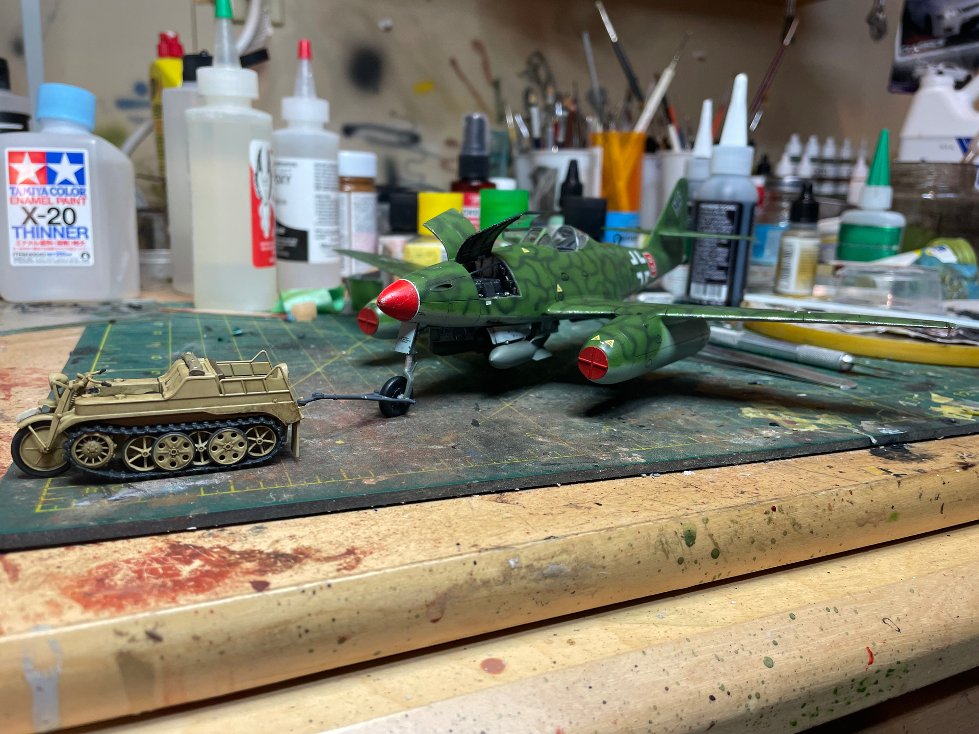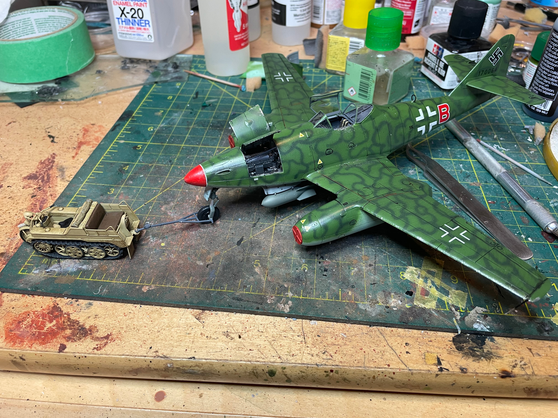 Finished a second one off, Tamiya’s Me-262A 2a with Aries Resin cockpit, sagged wheels and metal landing gear.