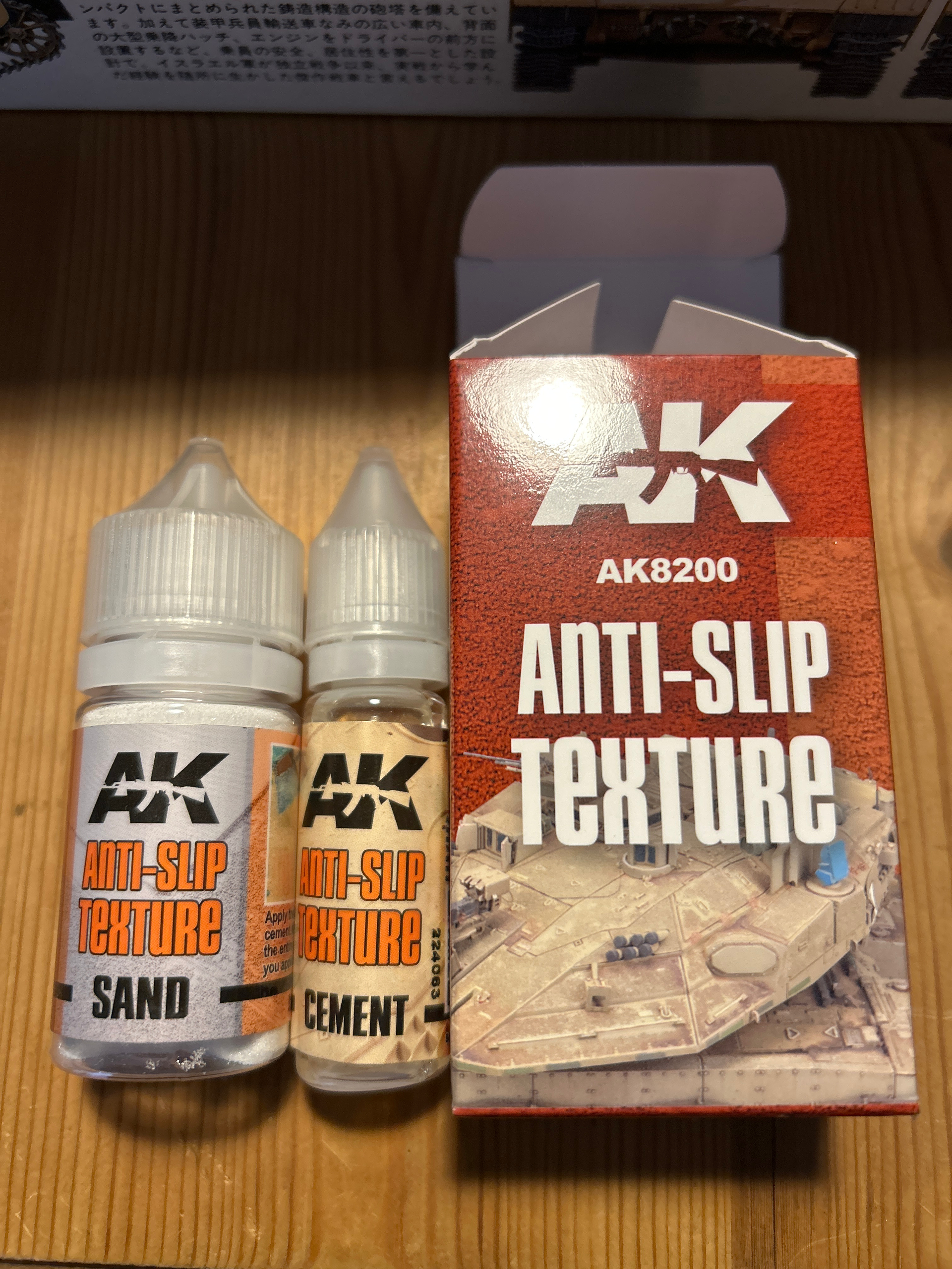 A friendly heads up. I had a hard time getting the AK Antislip “cement” to work in my favour. If you have better luck, please share your secret. I eventually gave up and used slightly thinned Tamiya clear flat…. and then applied the sand to that.