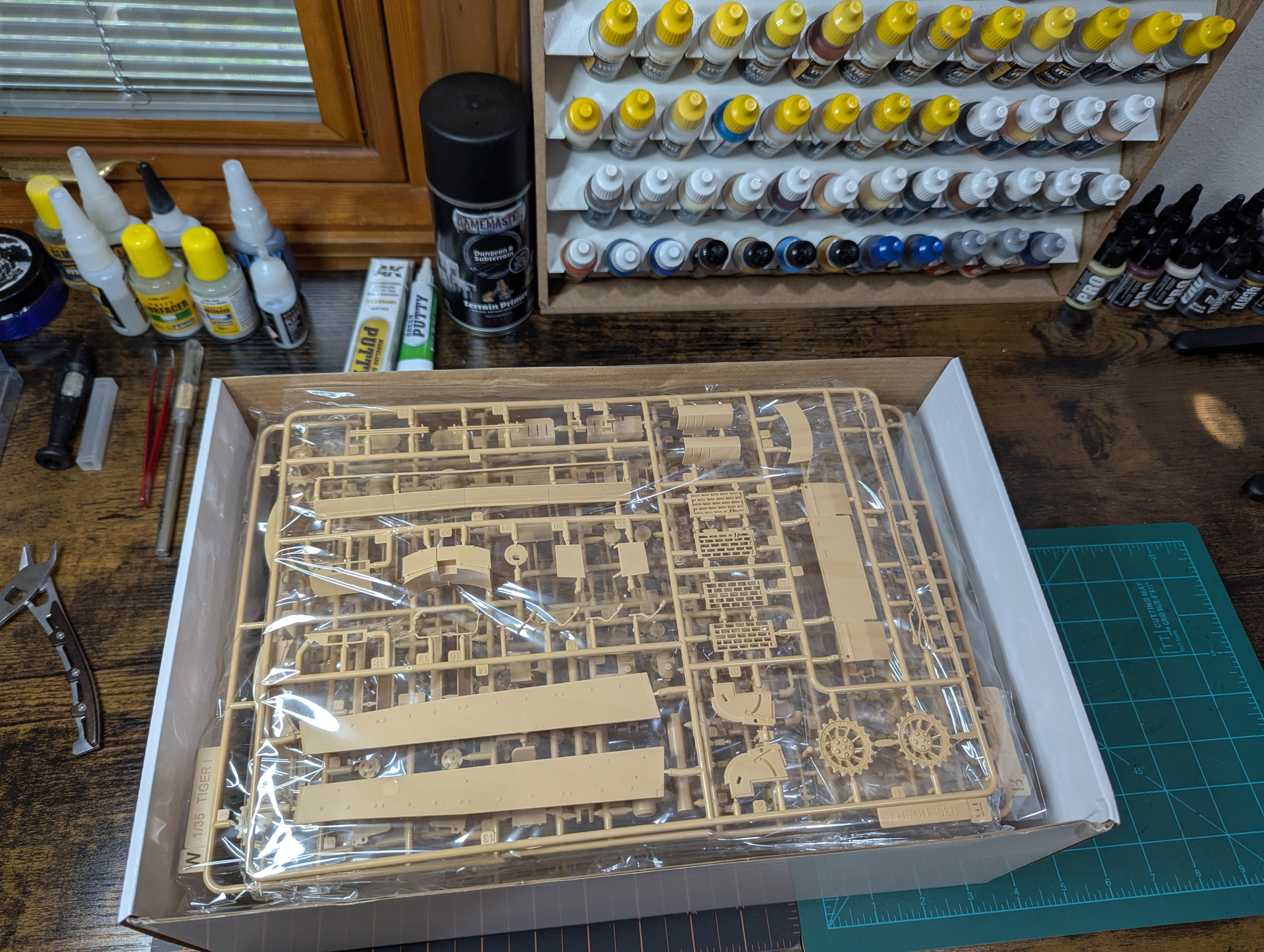 For the abandoned tank, will be using the Tiger I Initial Production (Tunisia) with interior from Rye Field Model along with the initial production upgrade set and metal barrel. I know it’s mostly going to be out of sight except for the really intrepid viewer who cranes to peer in the hatches, but I am going to do the interior anyway because I think it’ll be enjoyable. I am not sure what the track links are like with this kit, but if they don’t feel weighty enough, I’ll likely grab a set of the Fruilmodel early tracks.