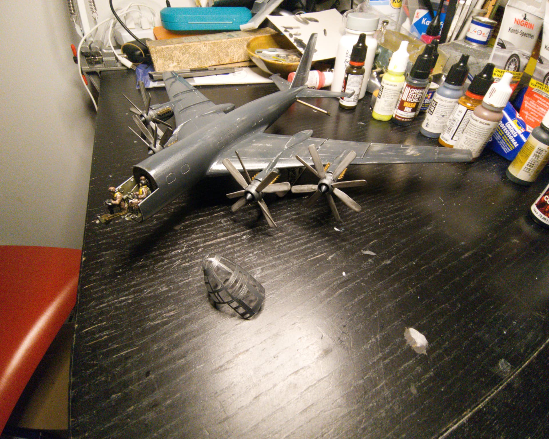 I spend some time to continue the job … Masking of the front canopy and washing on the props , one complete evening job .