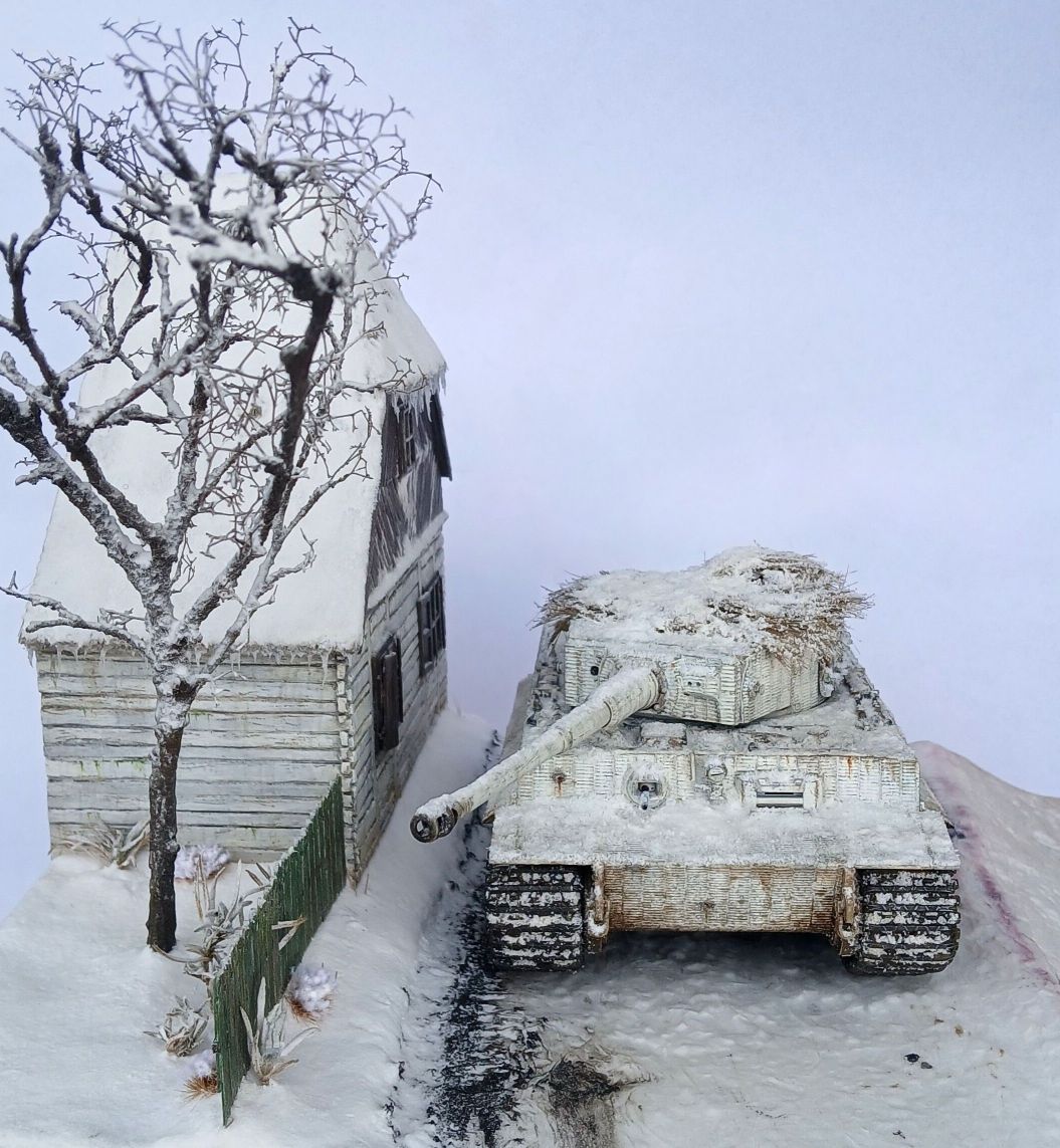 Nice work! Is the tank in action or is the enemy nearby? The hay and snow pile on top of the turret should be adjusted – the commander is blind. That would never be allowed to happen. How did the commander get into the tank with that pile atop of the hatch also? Maybe remove that?
