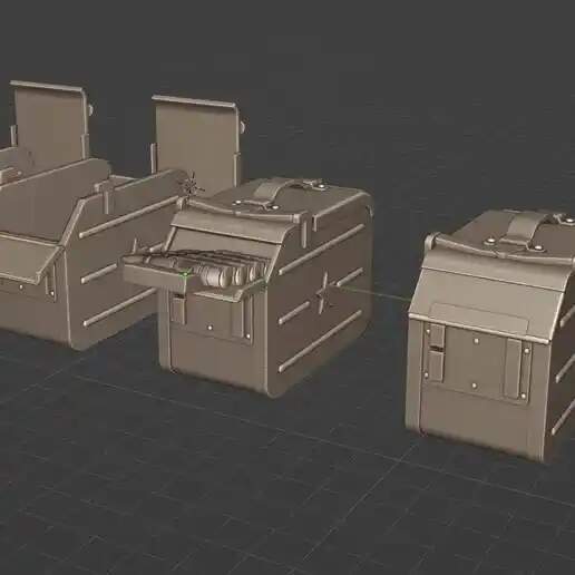 If you have a 3D printer or access to one, there is a file for them on Cults 3D as well. It has open and closed boxes w/and w/out ammo, individual shells, and empty casing, along with an ammo belt.