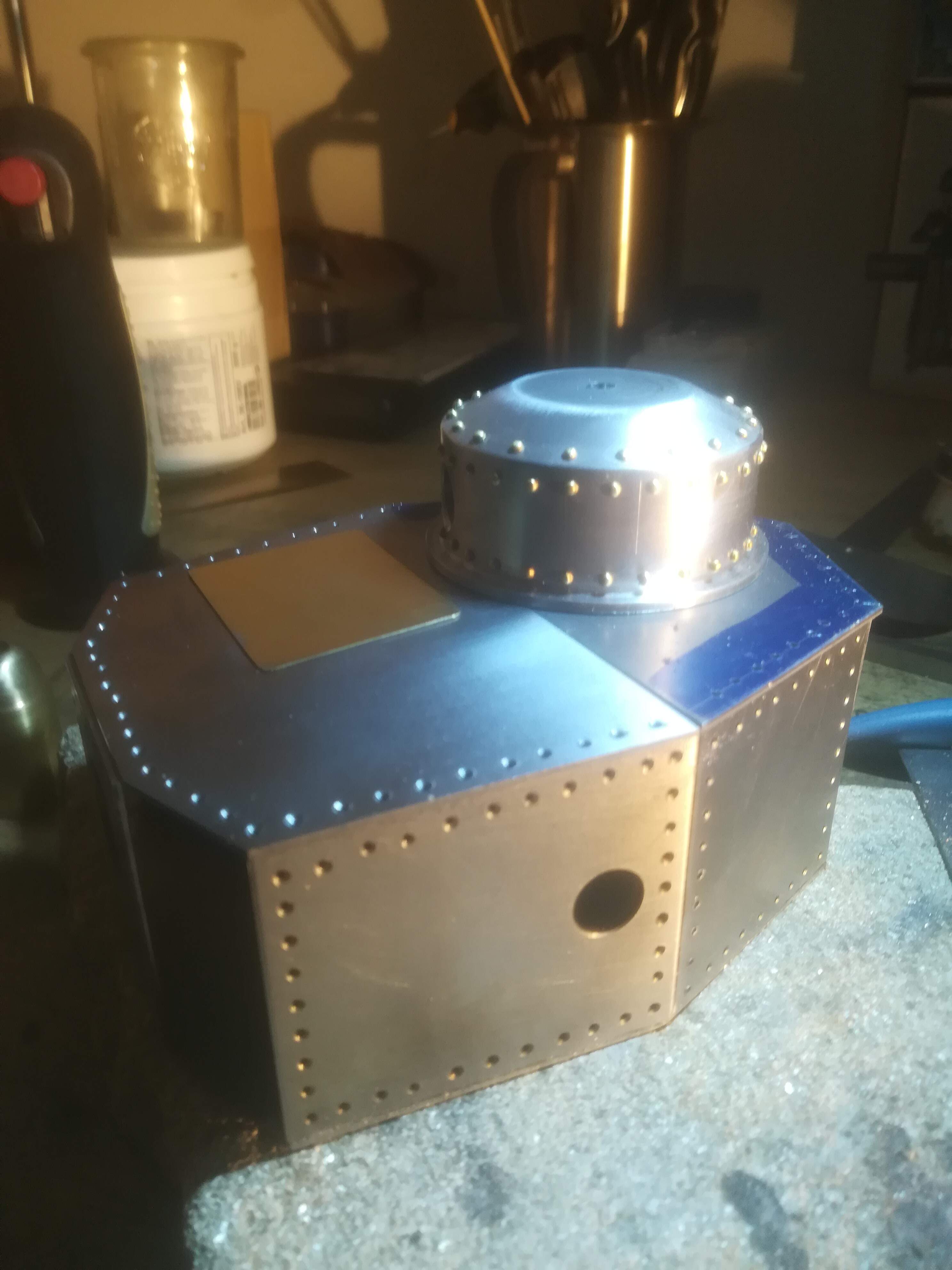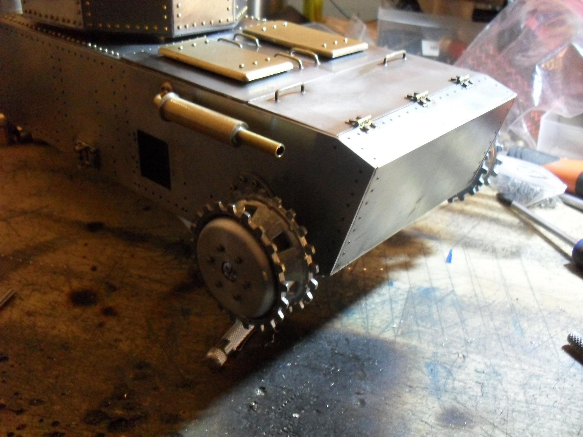All the pieces were marked out on one large 1.2 mm sheet and cut out with a jigsaw. These were then filed to shape and any cutouts or whatever made.