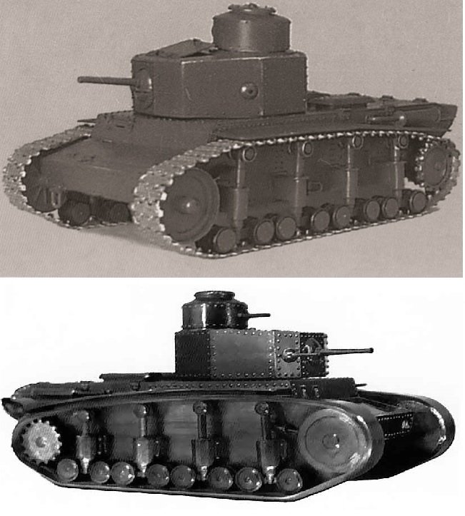 Whats even more annoying is that there are some pictures of a tank that looks very like the designers actual plans. One of them is a wooden model from the time, the other is a typical interwar “representation” of their design and the third is a grainy shot of what appears to be a prototype following the designers original plans.