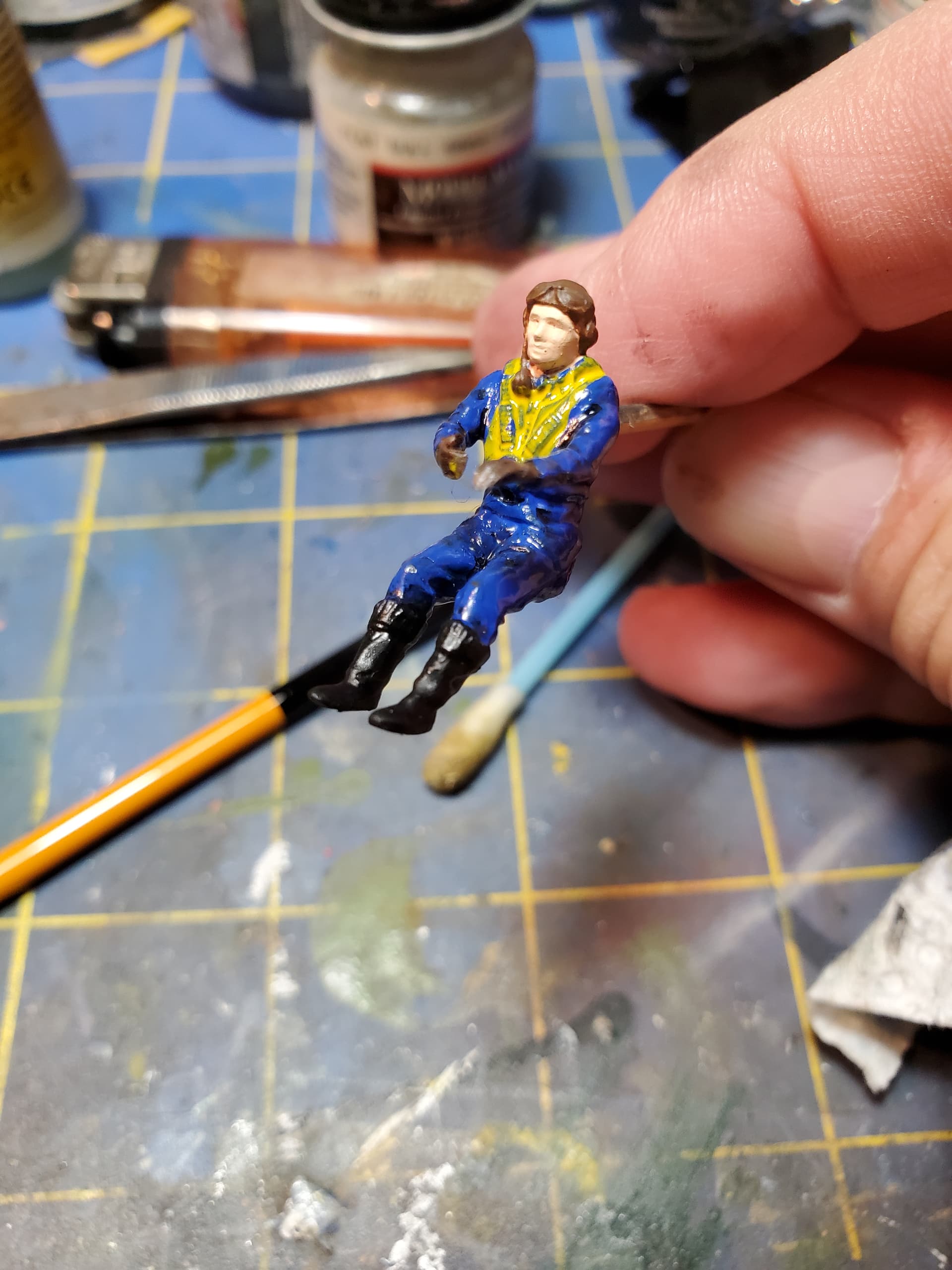 Hey Joe looking good. The pilot looks good to me. The spitfire looks so much cooler with its legs up. Look forward to the end result.