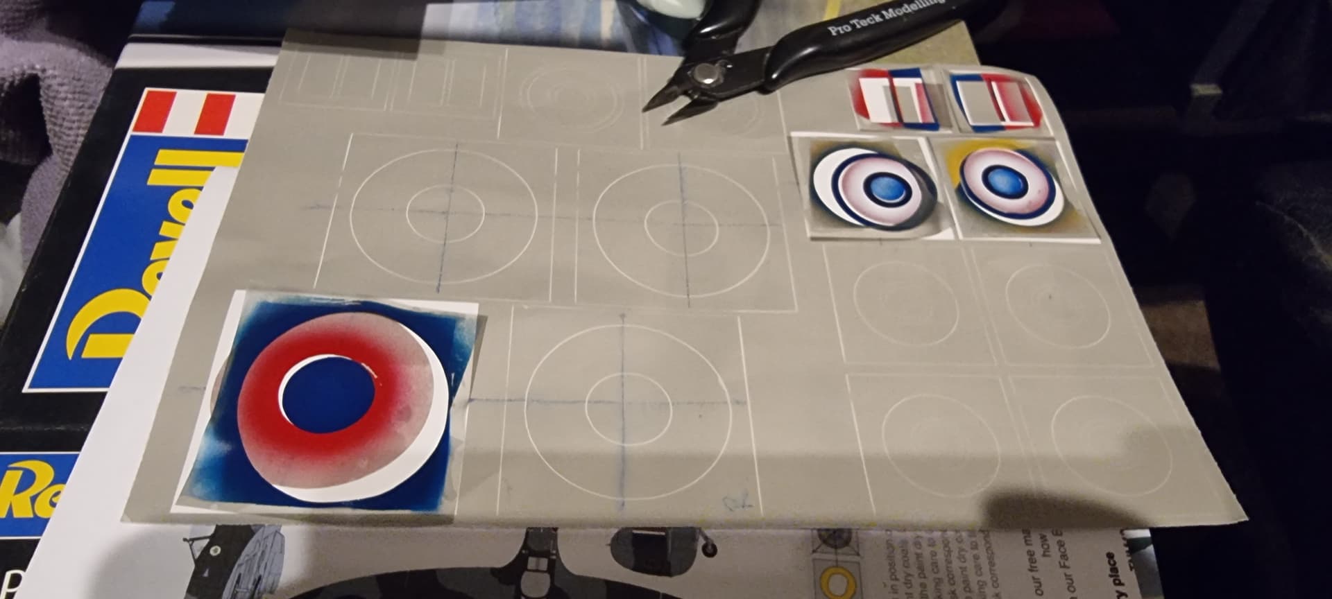 These are the masks…and if you are confident enough you can reuse. Notice I only used the one roundel for both wings…leaves me with spares.