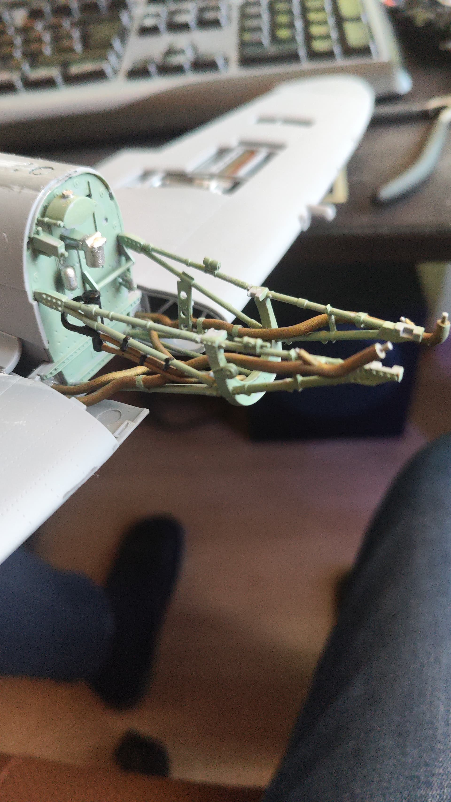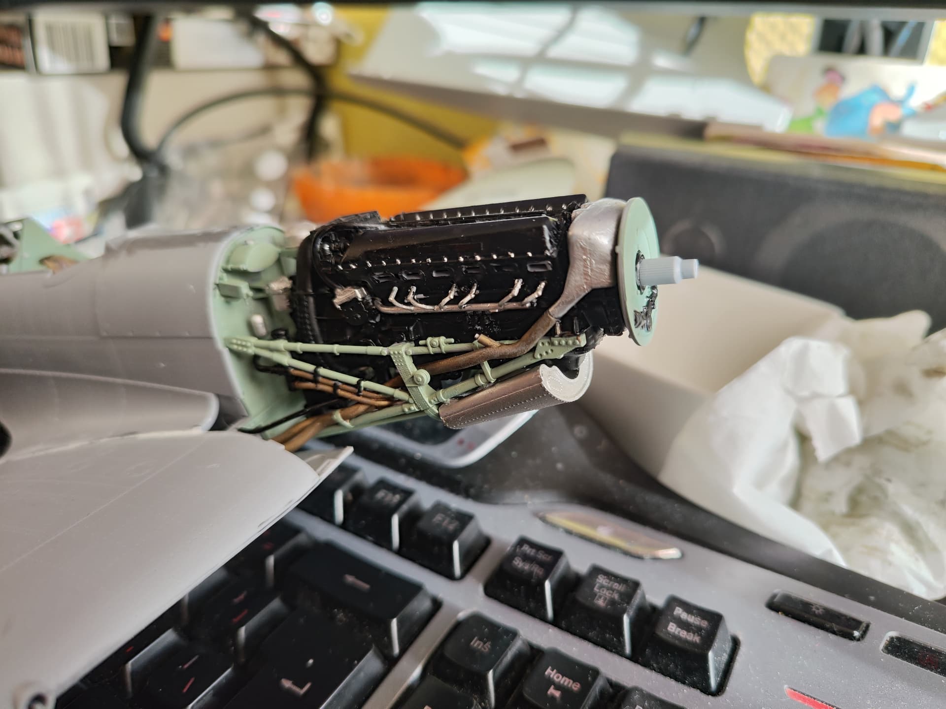 Thanks… I embellished it with the Quinta set… That really spices up the cockpit… Since the radio is also treated in that set, I opened up the radio hatch to show, and added leads to it… For now the hatch is taped on the inside, to facilitate painting…