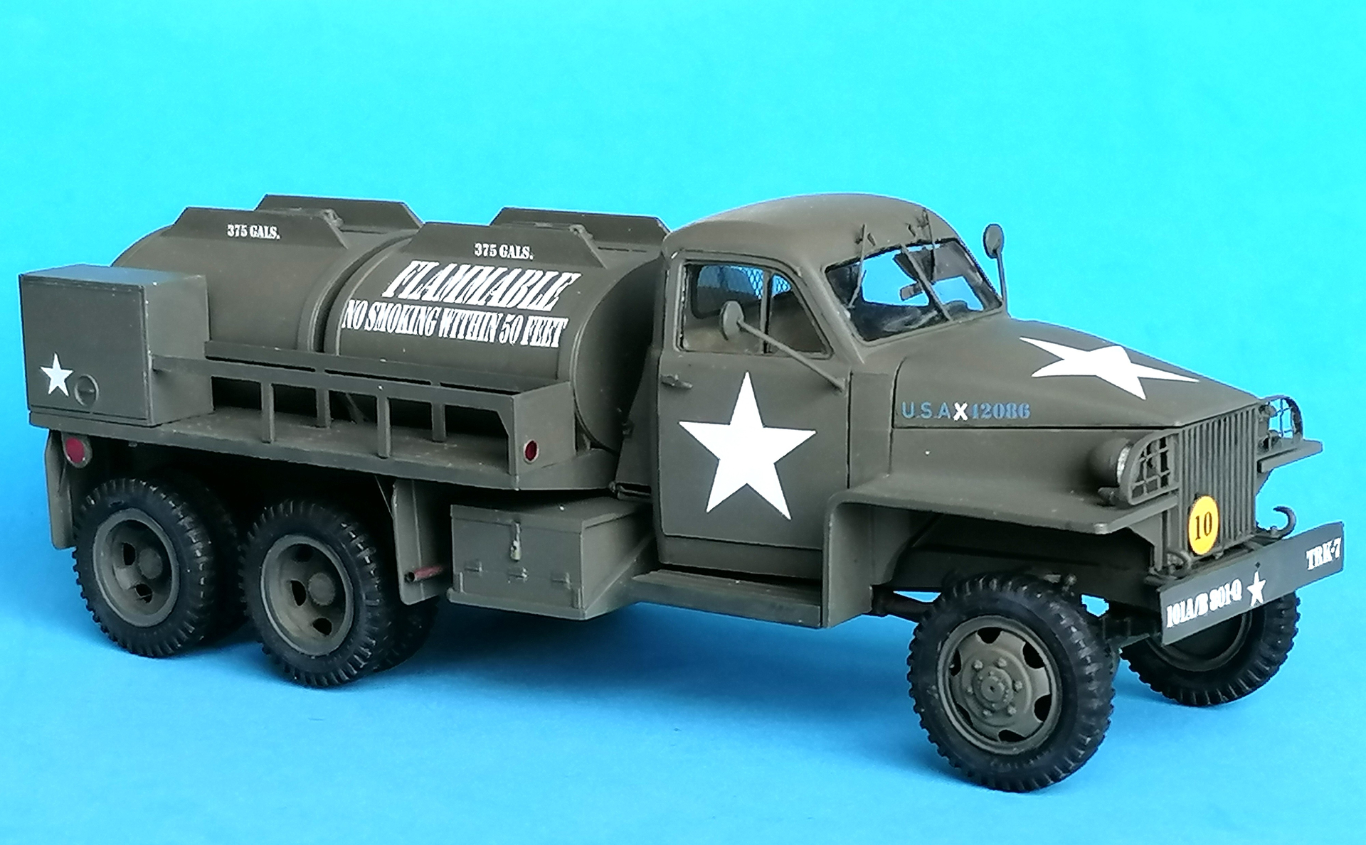 The CCKW tankers had electrical tail lights - at least all those pictured in the Doyle book. And their exhausts were just as those on standard cargo CCKWs, again as shown in that book.