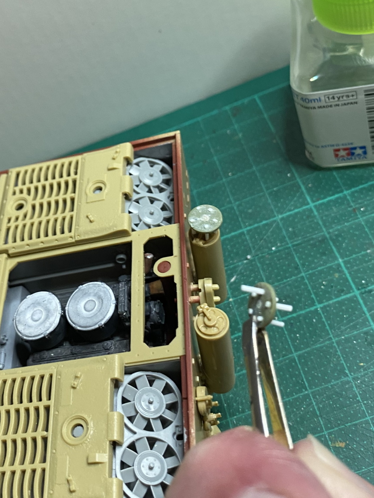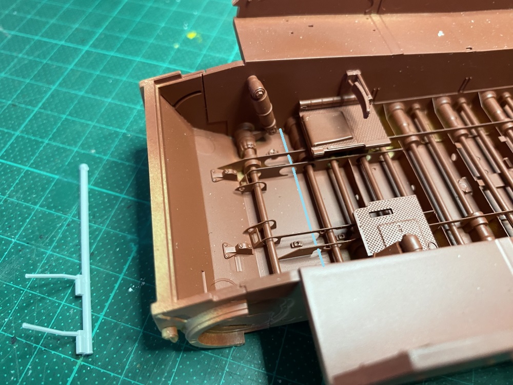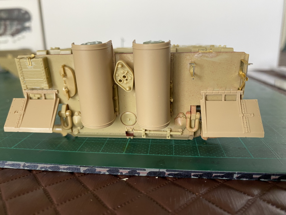 From the refs I’ve seen the primer colour didn’t extend any higher than the torsion bars, and even they were probably steel. Maybe he just intended it as a base coat. Everything else including the side/front/rear walls should be…most likely…off-white/ivory. And if you disagree you can take it up with my new best buddy for this build, Martin Kovac aka NightShift.