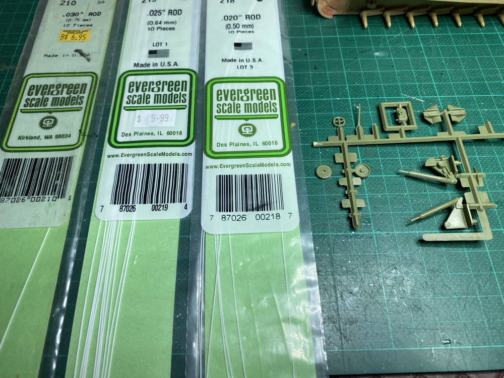 I wasn’t expecting that. Given smaller components had been de-sprued (is that a word?) but preserved in the box, I’m at a loss to explain their disappearance. But it is what it is, no choice but to scratch them and unfortunately they’re not the easiest to get symmetry but I’ll do my best.