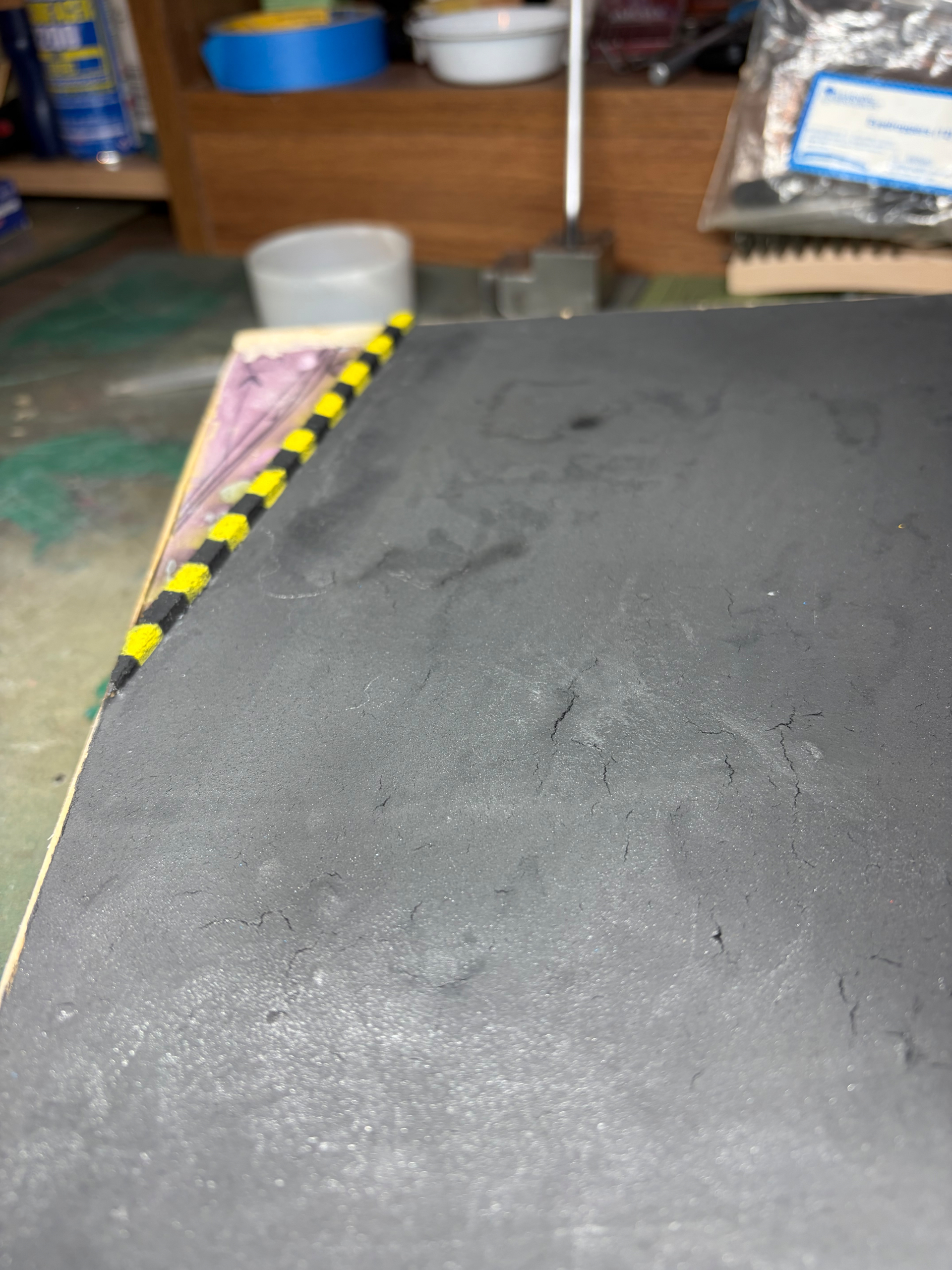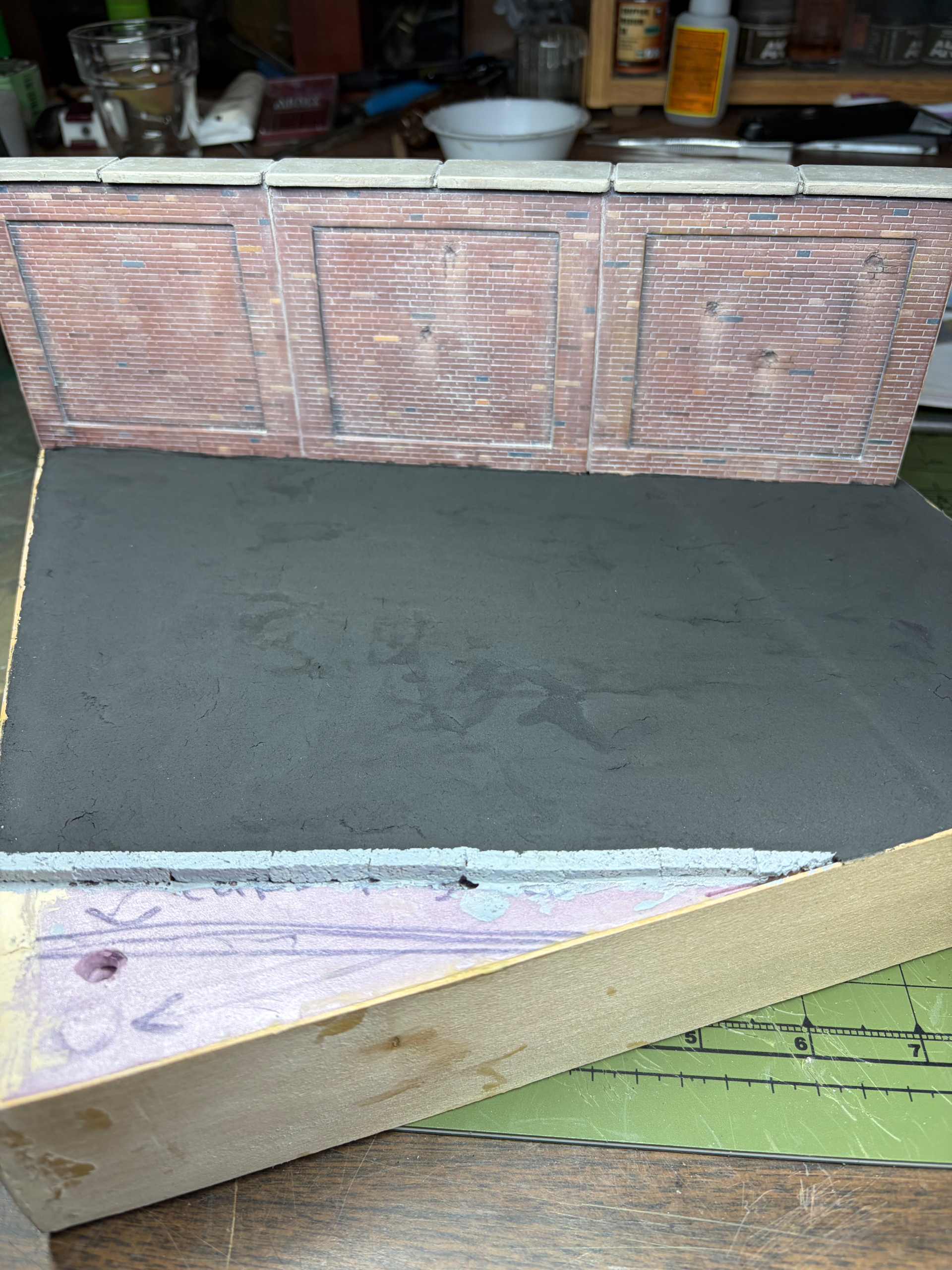 The light pole was airbrushed with MiG Matt Aluminum, I also sprayed the curb and added the yellow stripes. I’m gonna try to get the ground work by the light pole in today. Tomorrow I’ll probably start weathering the road etc.