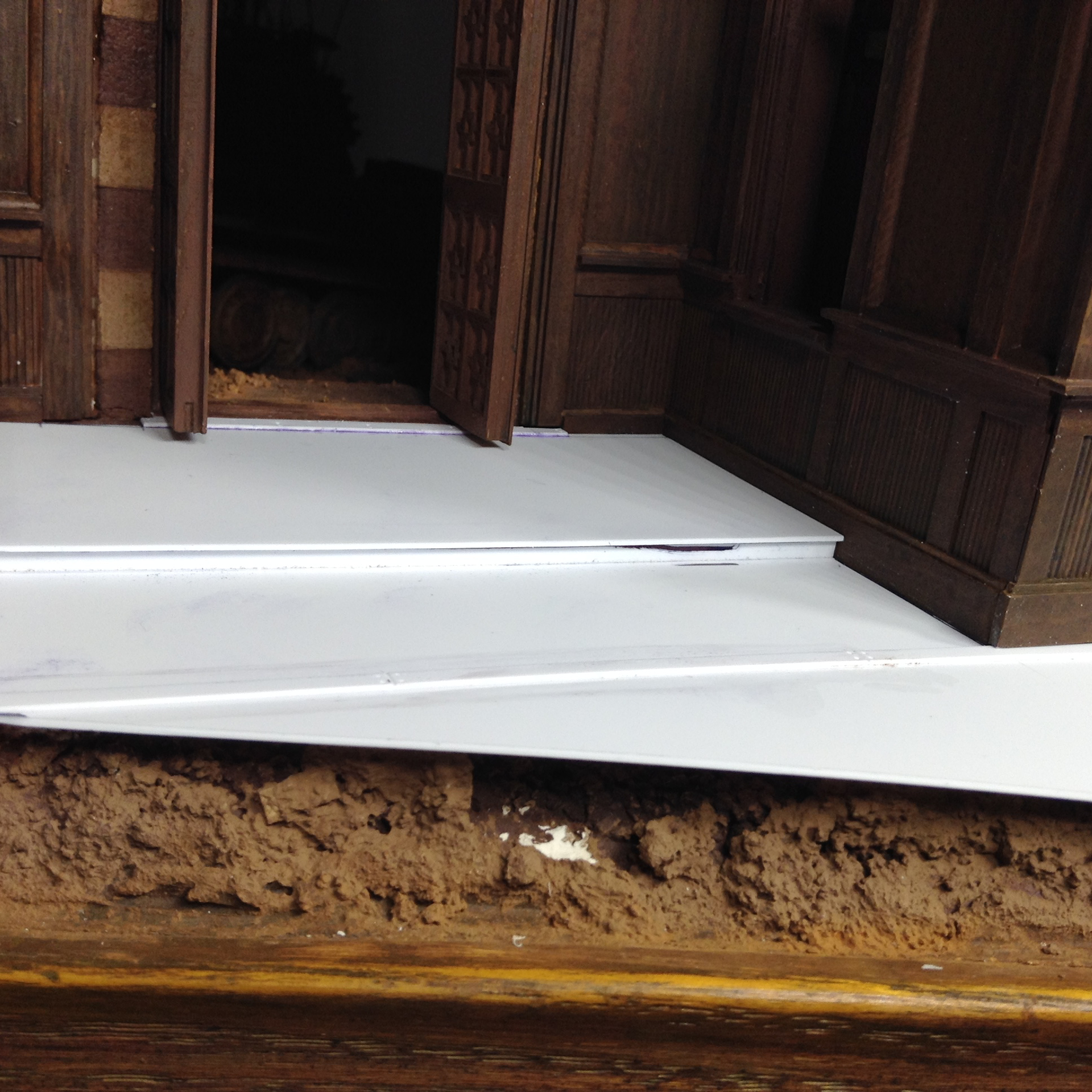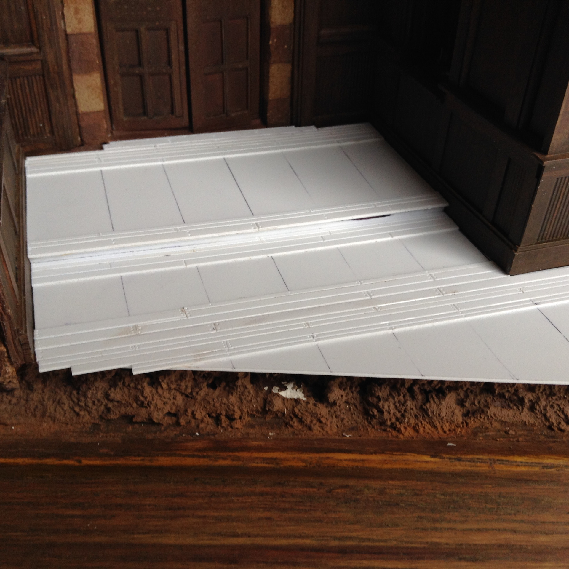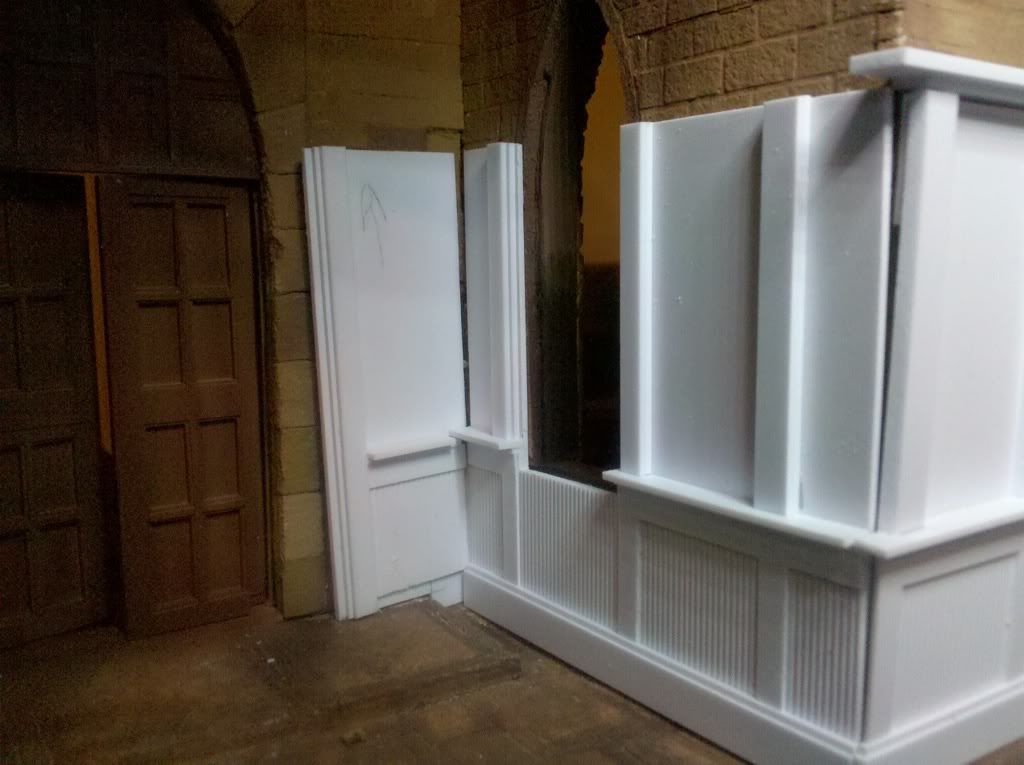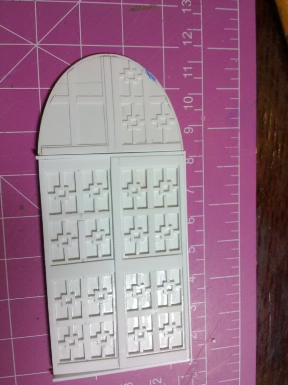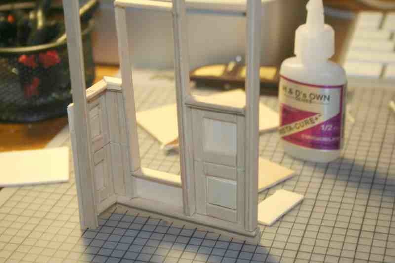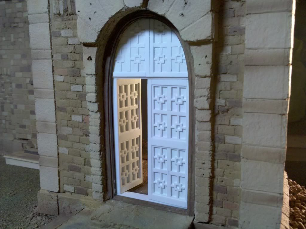 The doors began as actual wooden doors, but even though I liked them quite a lot I knew I could do better. That and I had at the time a lot of Evergreen plastic stock at hand.