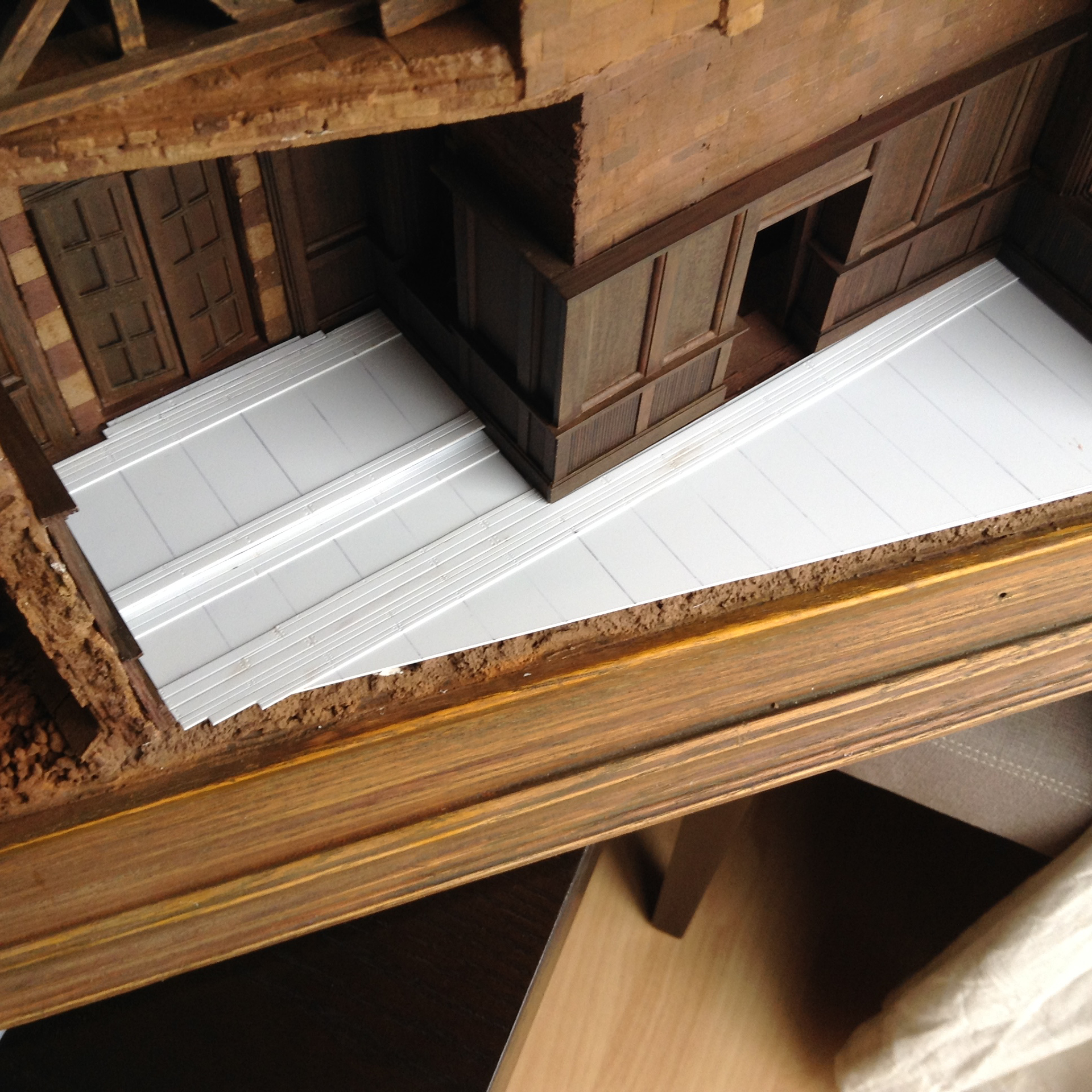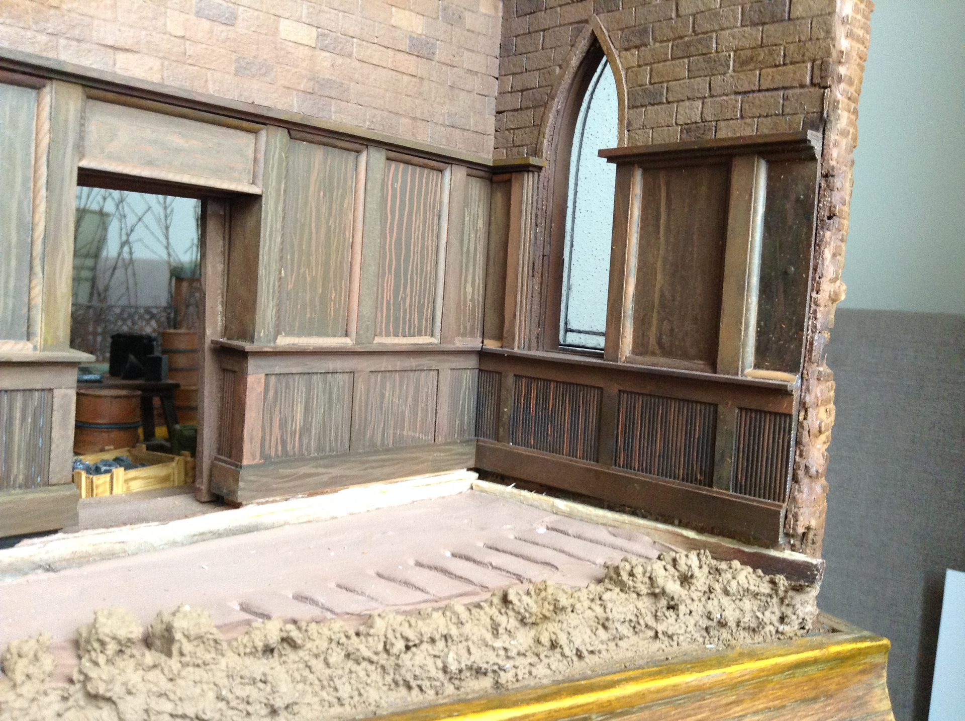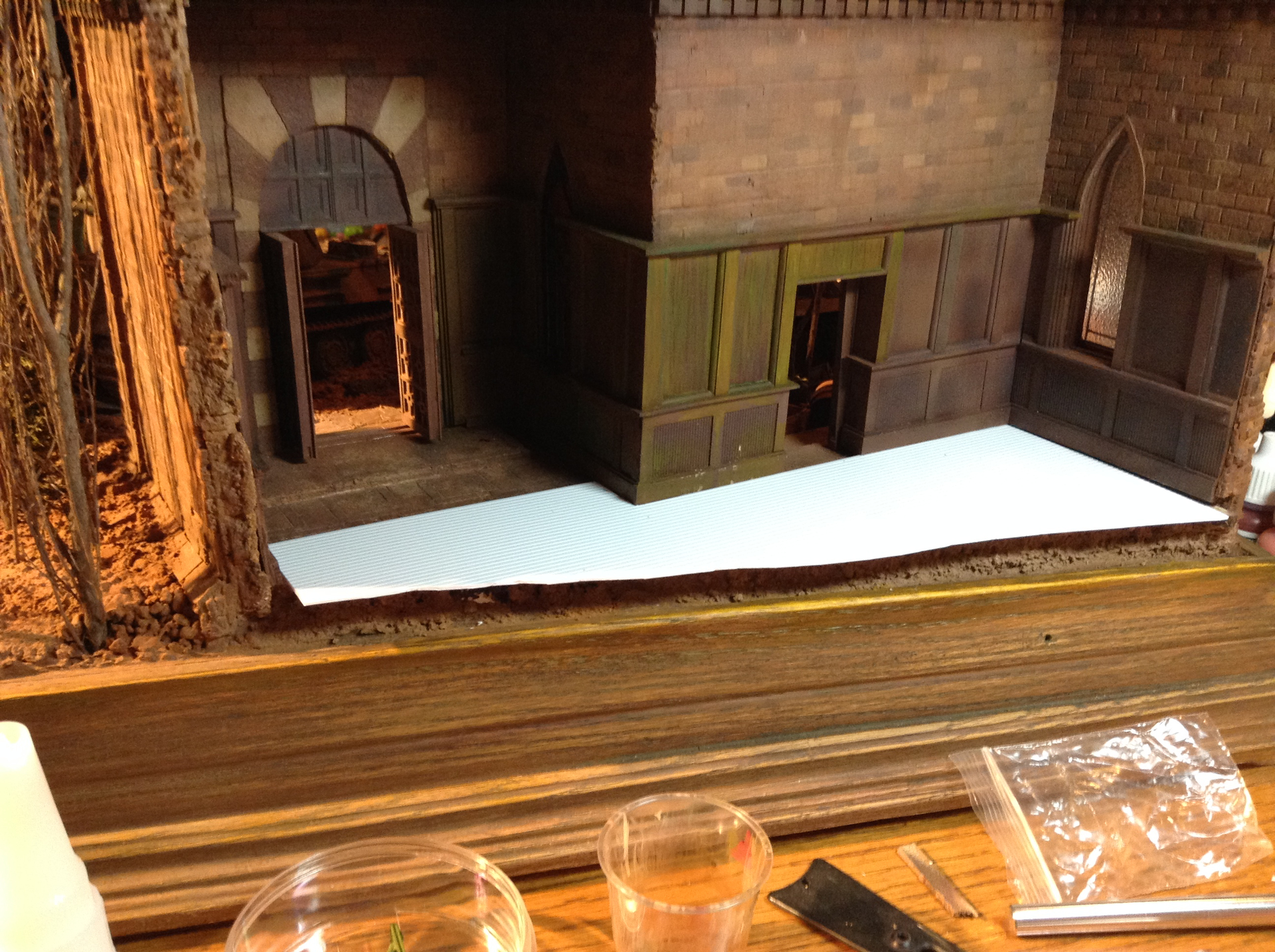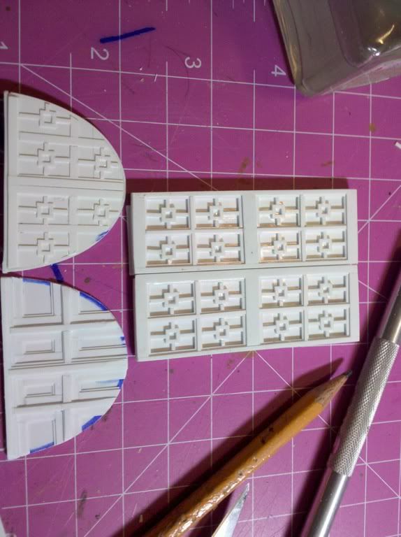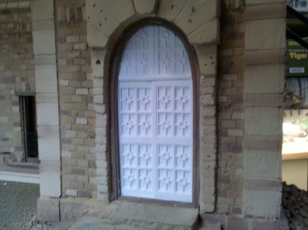 The doors began as actual wooden doors, but even though I liked them quite a lot I knew I could do better. That and I had at the time a lot of Evergreen plastic stock at hand.